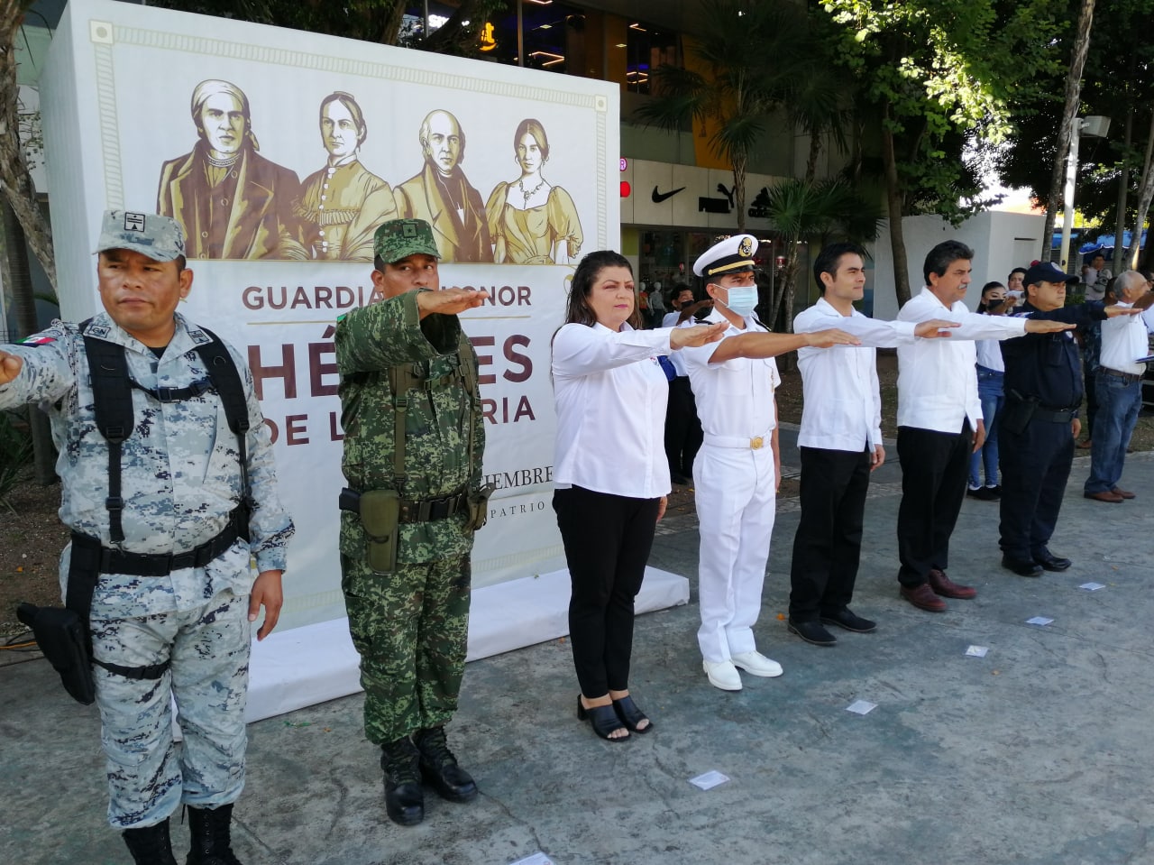 Con el izamiento de la bandera tricolor ondeando en la asta del Parque del Crucero, autoridades municipales, estatales y federales, así como elementos del 64 Batallón de Infantería, alumnos de la Secundaria Técnica 111 y trabajadores de la Dirección General de Servicios Públicos, realizaron una guardia de honor a los Héroes de la Patria, en homenaje a hombres y mujeres que legaron sus vidas por crear un mejor México.