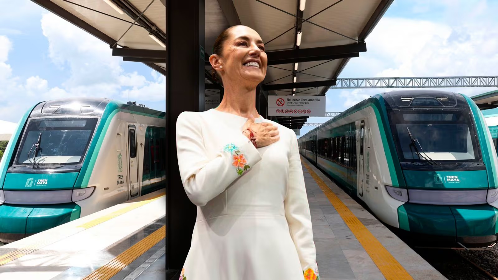 En un evento por el aniversario de la obra, Sheinbaum festejó que el Tren Maya “le dice al planeta entero que solo en México” es posible construir en tan solo cuatro años un tren de más de 1.500 kilómetros con distribuidores, viales, puentes y terraplenes.
