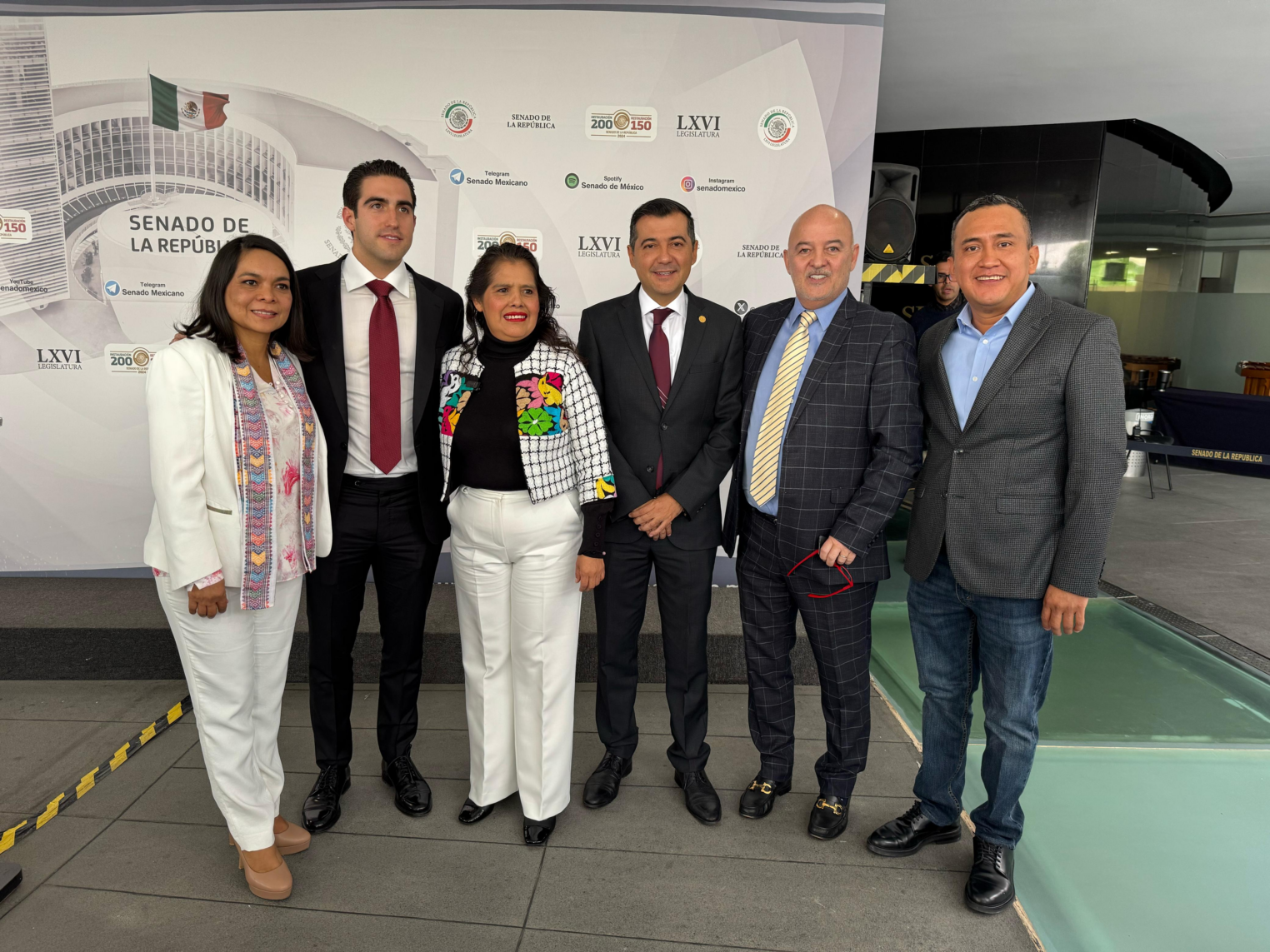 El presidente de TuristikTv, Jose Gabriel Gutiérrez Lavin; junto al senador Gino Segura y senadores de Oaxaca y Guerrero.