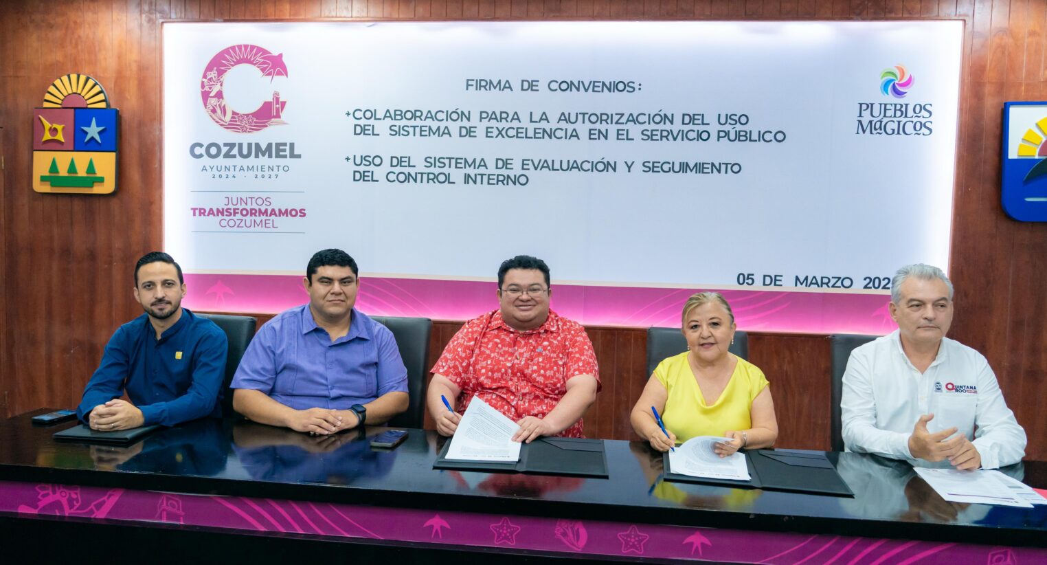 Cabe destacar que dichos convenios firmado en el Salón Municipios de Quintana Roo, tienen como objetivo establecer las bases de colaboración entre el municipio de Cozumel y la Secretaría de Anticorrupción y Buen Gobierno del Estado de Quintana Roo para el mejoramiento de la atención y seguridad del público, en las oficinas gubernamentales, con la finalidad de mejorar los tiempos en función a los trámites y servicios, y para ser realizados de una manera eficaz y eficiente, de igual forma, ofrecerá innovación en los procesos de control interno y la administración de riesgos, procurando que exista un mecanismo para mantener informadas a las personas servidoras públicas del ente.