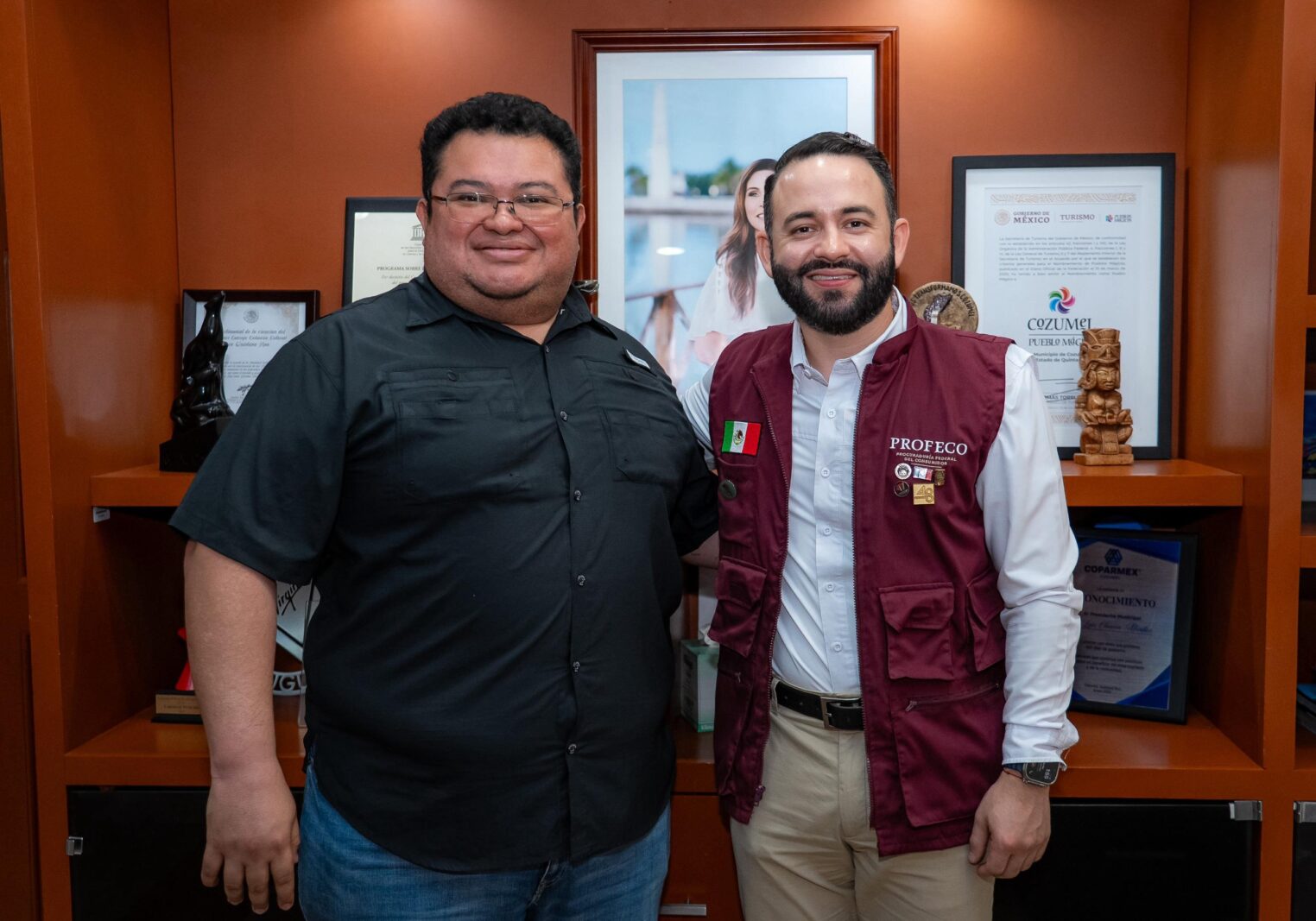 El presidente municipal de Cozumel, José Luis Chacón Méndez, firmó un convenio de colaboración con Francisco Malacón, director de la zona Caribe de la Procuraduría Federal del Consumidor (Profeco), en donde también estuvo presente la diputada María José Osorio, con el objetivo de continuar trabajando de manera conjunta en beneficio de los consumidores de productos en la isla.