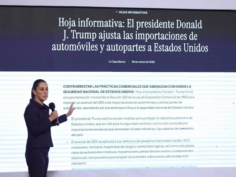 La jefa de Estado también habló sobre los aranceles a los autos, en este contexto, aseguró que “lo que estamos buscando es que sea el vehículo completo (libre de aranceles), las partes fabricadas en México también no solamente las fabricadas en Estados Unidos. Dado que además, la mayoría de las empresas son de capital estadounidense”.