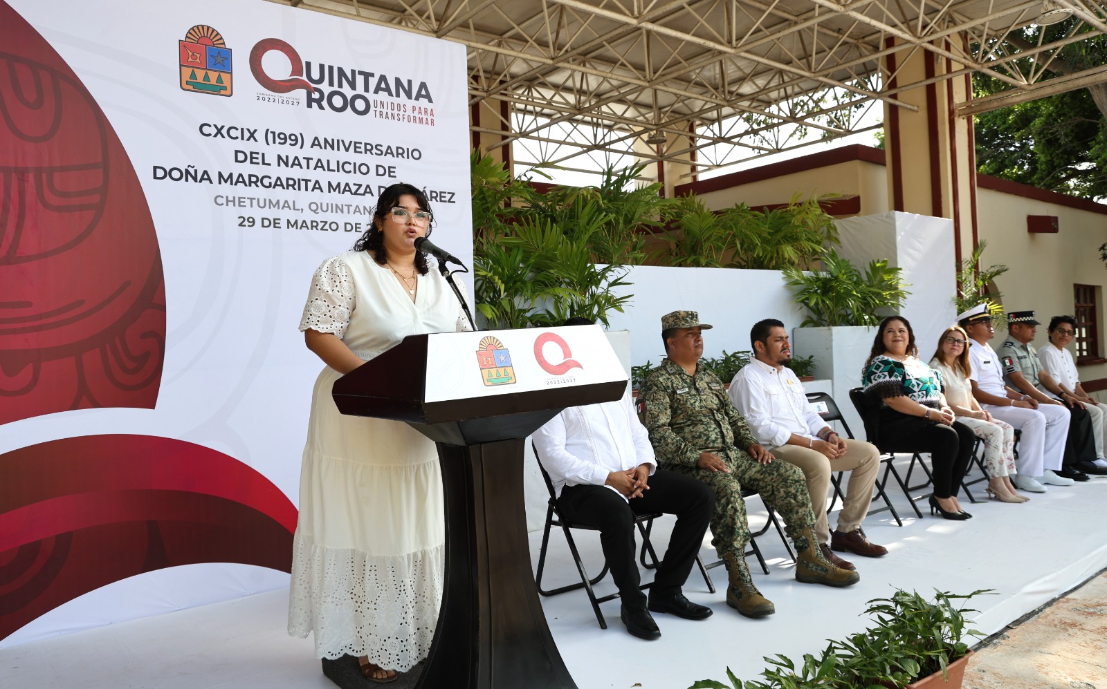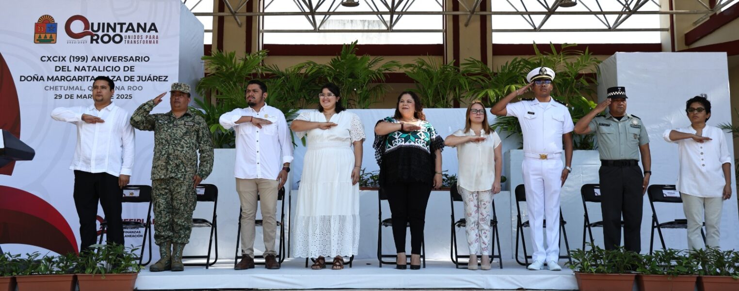 Con una ceremonia cívica el Gobierno de Quintana Roo conmemoró en Chetumal el 199 aniversario del natalicio de doña Margarita Maza de Juárez, quien fue la esposa de don Benito Juárez García, el “Benemérito de las Américas”.