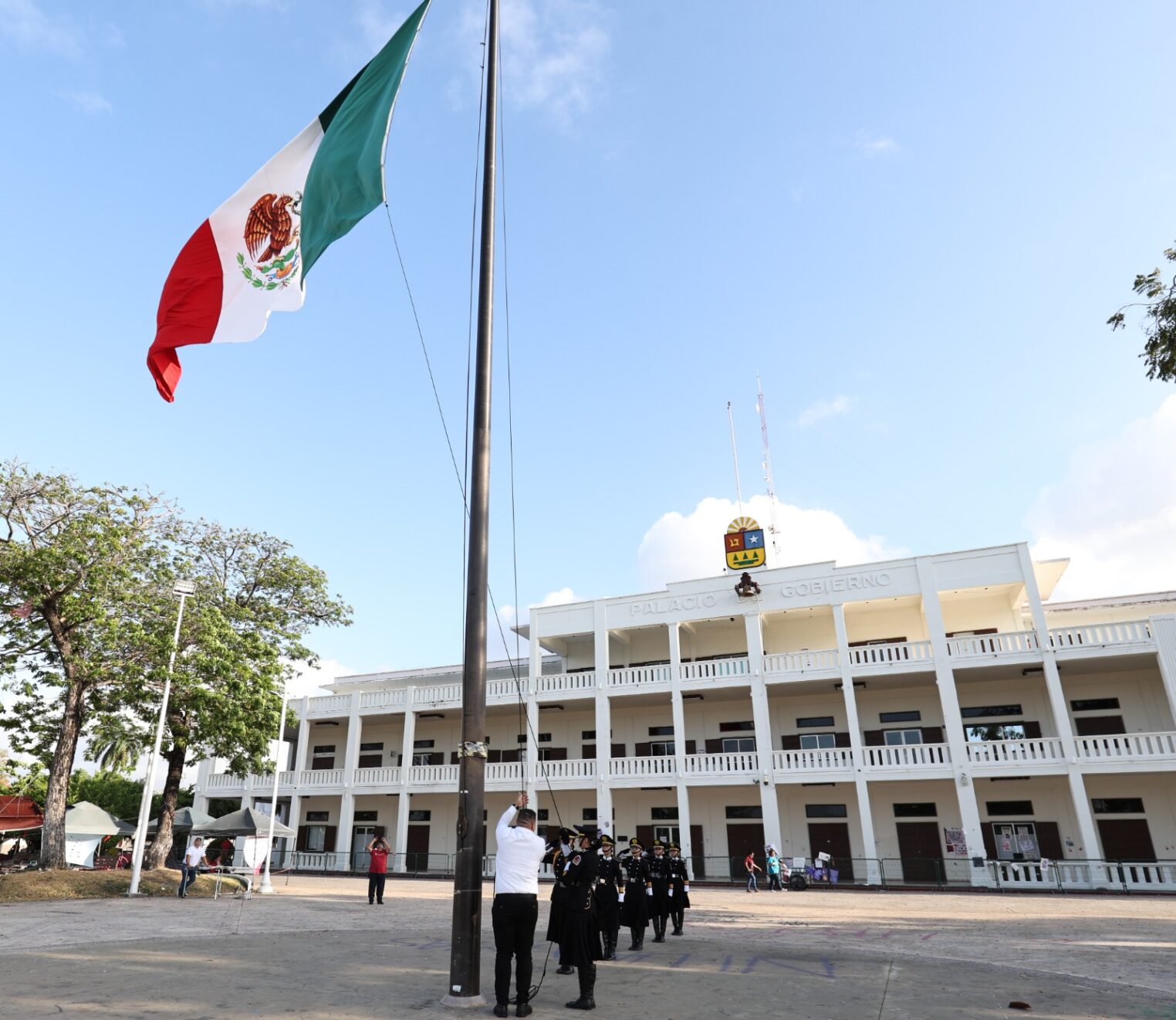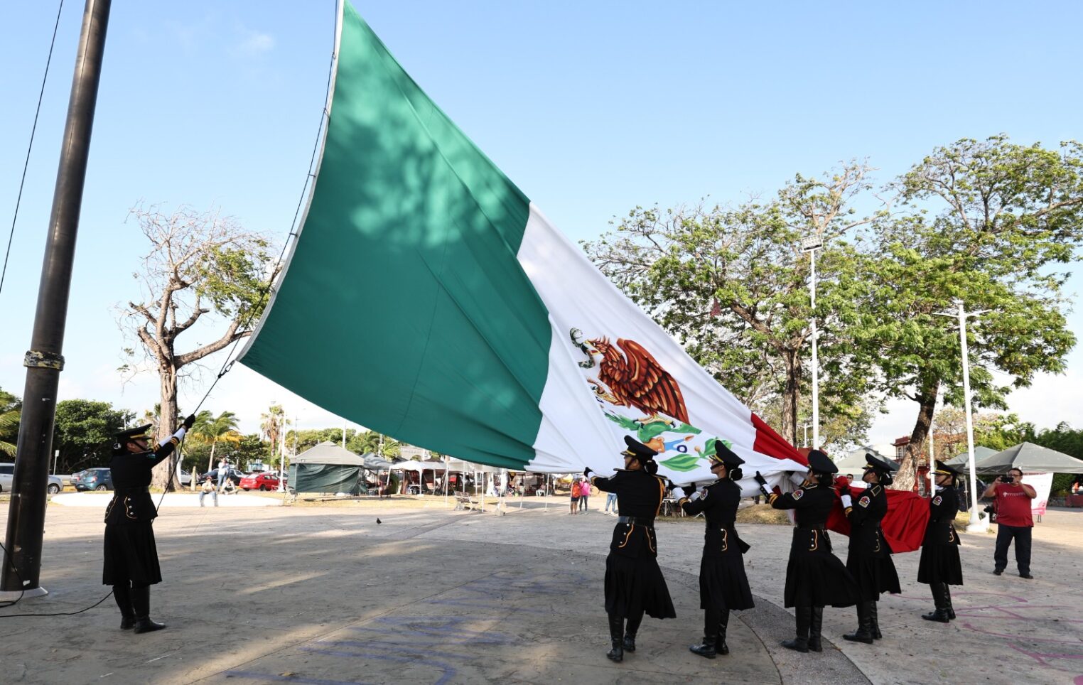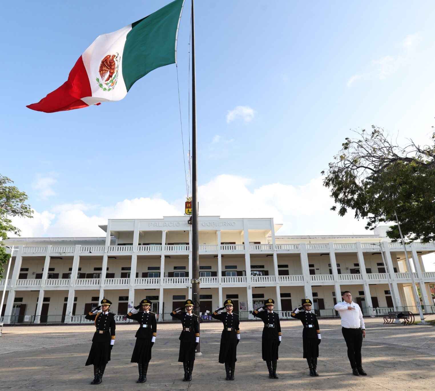 Antes de efectuar la ceremonia cívica, en la plaza cívica frente a Palacio de Gobierno fue izada la Bandera Nacional Mexicana a toda asta para honrar la memoria de tan distinguida dama en la historia de México, por personal de la Academia Cívico Deportiva Titanes de Chetumal.