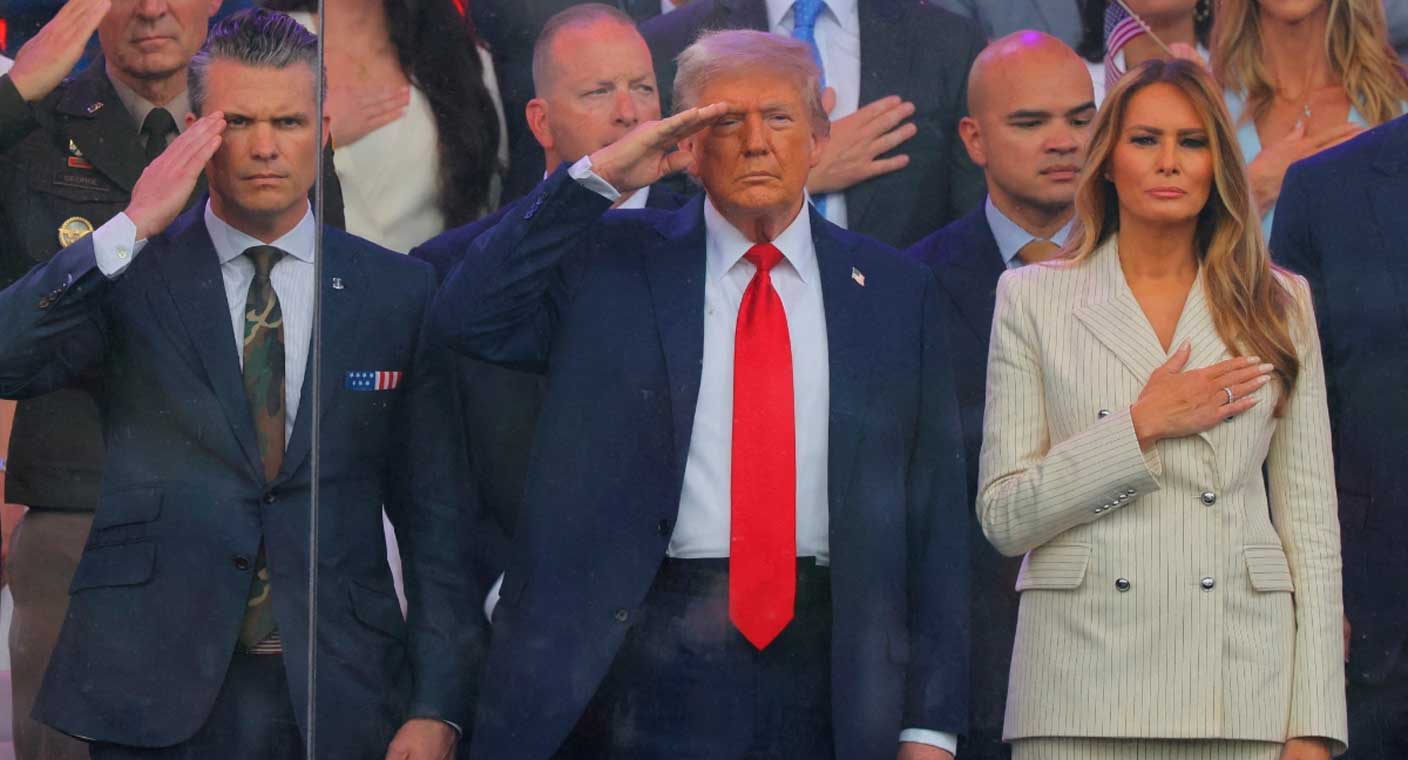 Acompañado por su esposa Melania, el magnate asiste al desfile que oficialmente conmemora el 250º aniversario de la creación de las fuerzas armadas estadounidenses.
