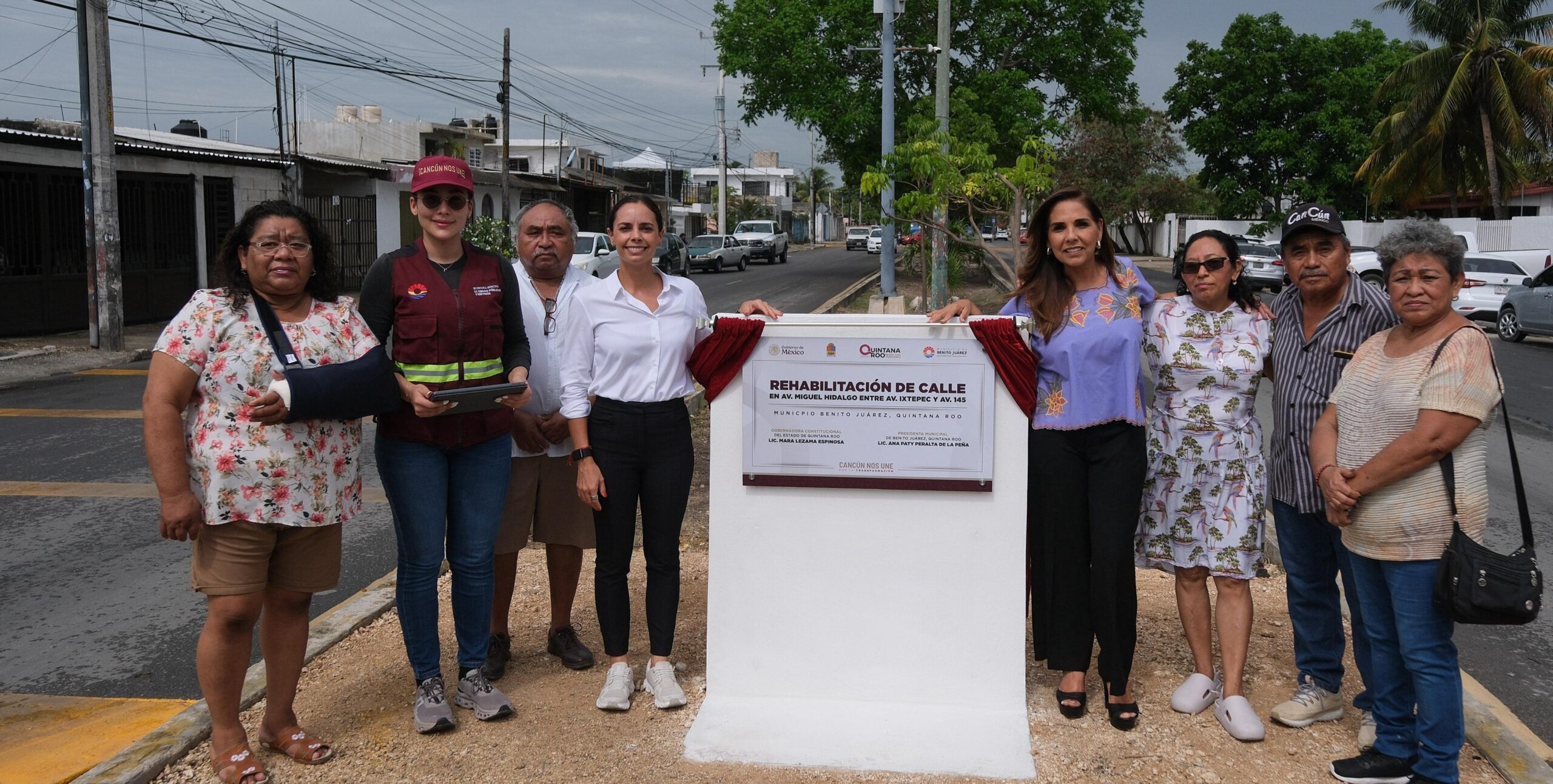 Con una superficie renovada y de mejor calidad la gobernadora Mara Lezama Espinosa y la presidenta municipal de Benito Juárez, Ana Paty Peralta de la Peña, entregaron la obra de rehabilitación de calle y construcción de pozos de absorción de la avenida Miguel Hidalgo de la ciudad de Cancún, luego de más de 30 años sin ser atendida, lo que permite una mejor movilidad y seguridad a las y los transeúntes y automovilistas.