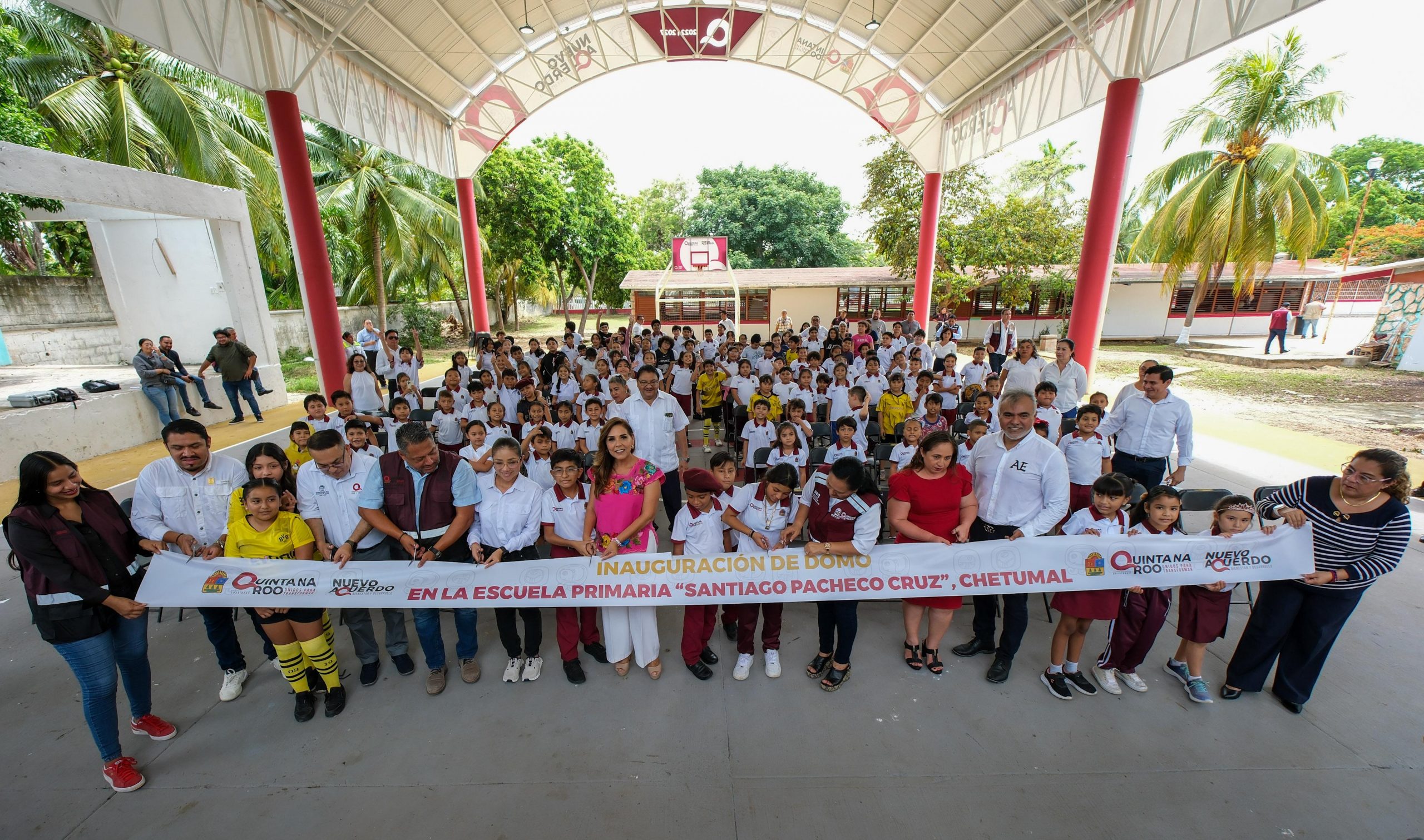 Con más de cinco décadas de espera, hoy las y los estudiantes de la escuela primaria “Santiago Pacheco Cruz”, en la ciudad de Chetumal, cuentan con un domo escolar digno y seguro, el que les fue entregado por la gobernadora Mara Lezama Espinosa durante un emotivo evento.