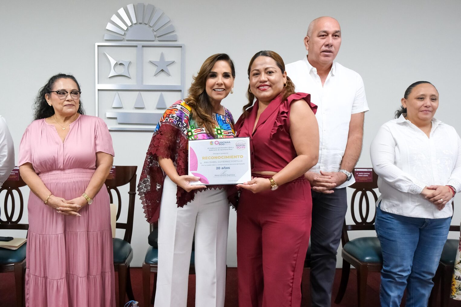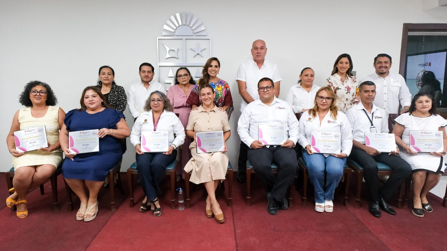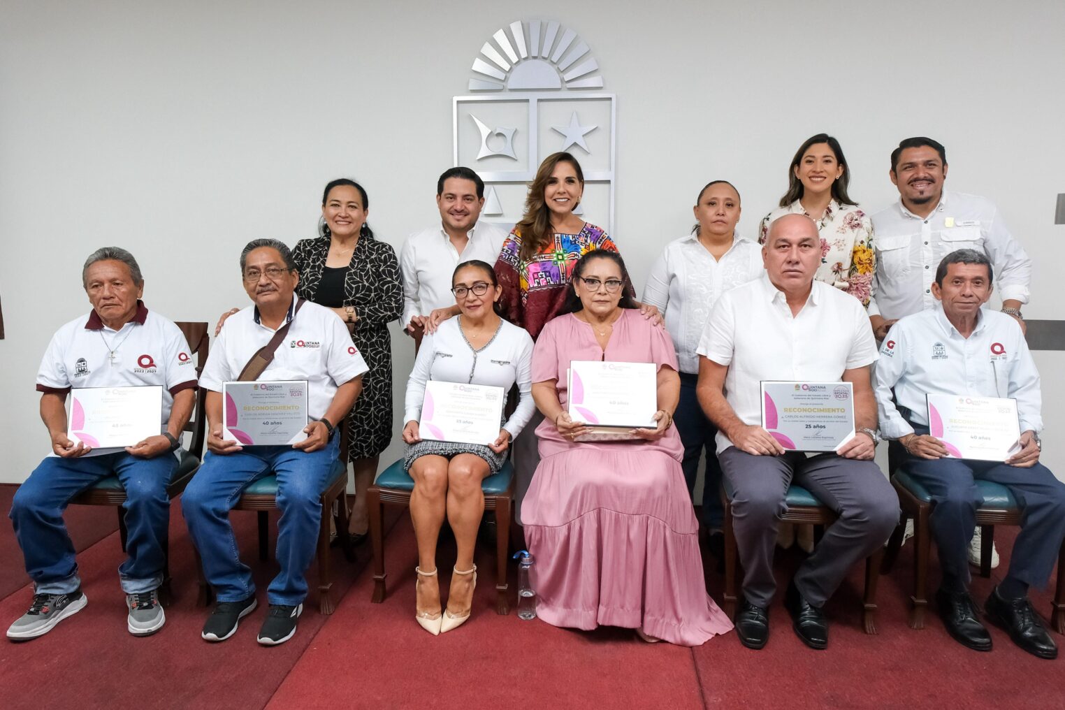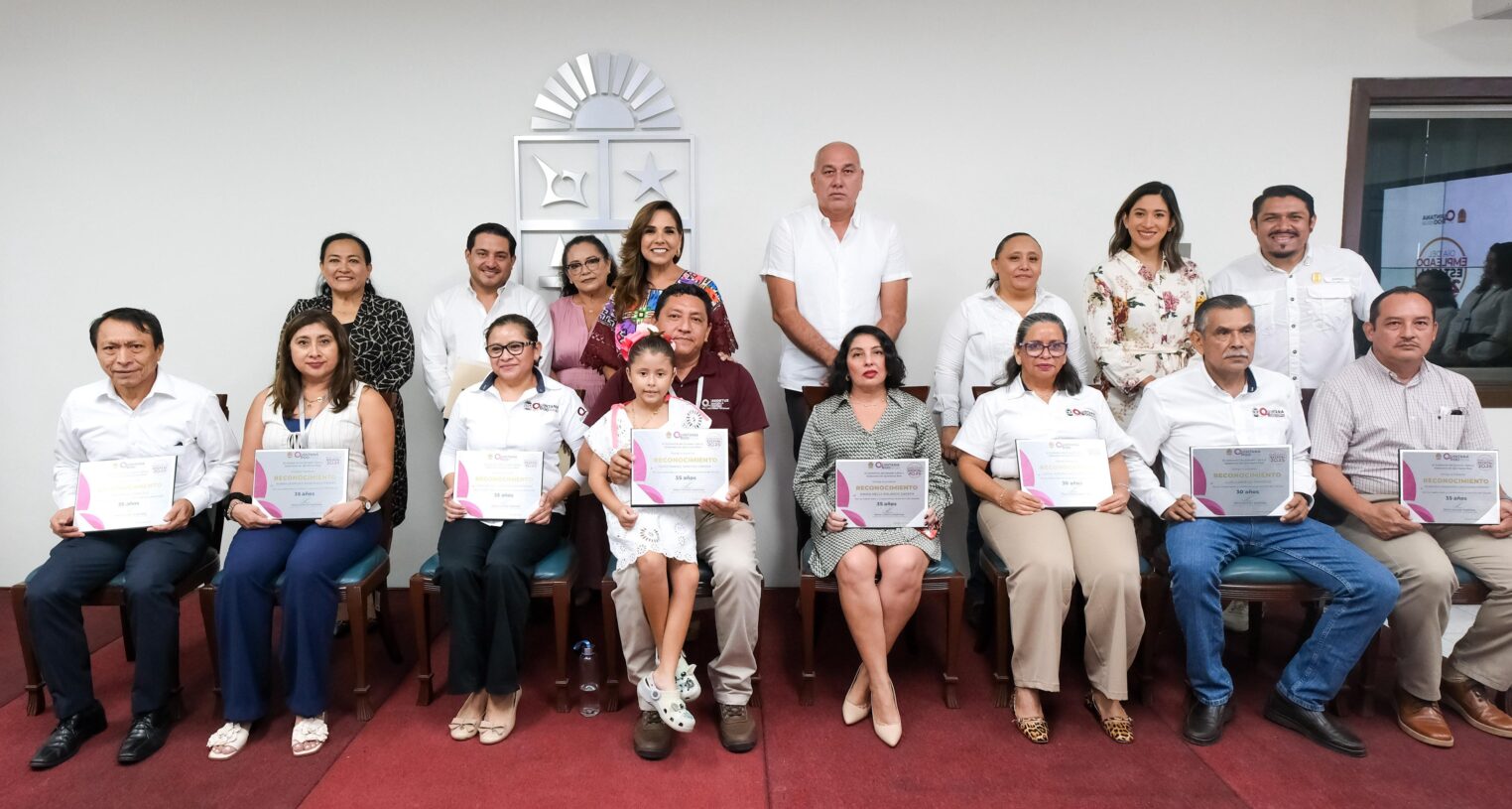 Durante el evento de entrega de estímulos y reconocimientos, la gobernadora de Quintana Roo añadió que hay trabajadores que llevan 20, 25, 30, 35, 40 y hasta 45 años dedicados al servicio público. “Cada año es una historia que vale la pena contar; son años de constancia, de entrega que ha ido creciendo con el tiempo, marcando el ritmo de una carrera que nunca se detuvo. El reconocimiento es también para su familia”, citó.