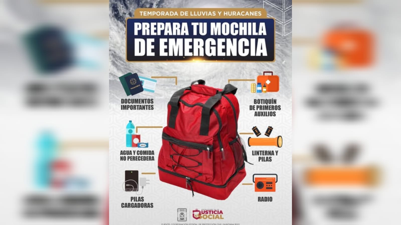 “Prepara tu mochila de emergencia ante la intensa temporada de lluvias y huracanes. ¡La prevención y estar informadas e informadas, salva vidas!”, destaca el Congreso del Estado de Quintana Roo en un comunicado publicado en sus redes sociales.