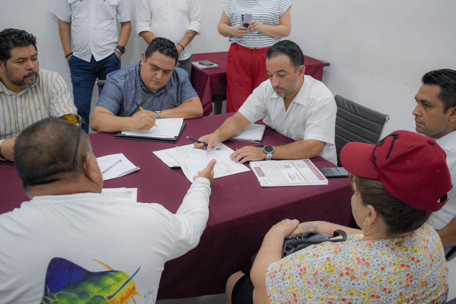Durante el encuentro, se revisó la situación legal y administrativa de un predio donde los ciudadanos desarrollan actividades económicas vinculadas al mar. En este sentido, Eleuterio Gutiérrez Peraza, quien se identificó como presidente de dicha cooperativa, reconoció que actualmente enfrentan un litigio que ha impedido la regularización de su licencia de funcionamiento.