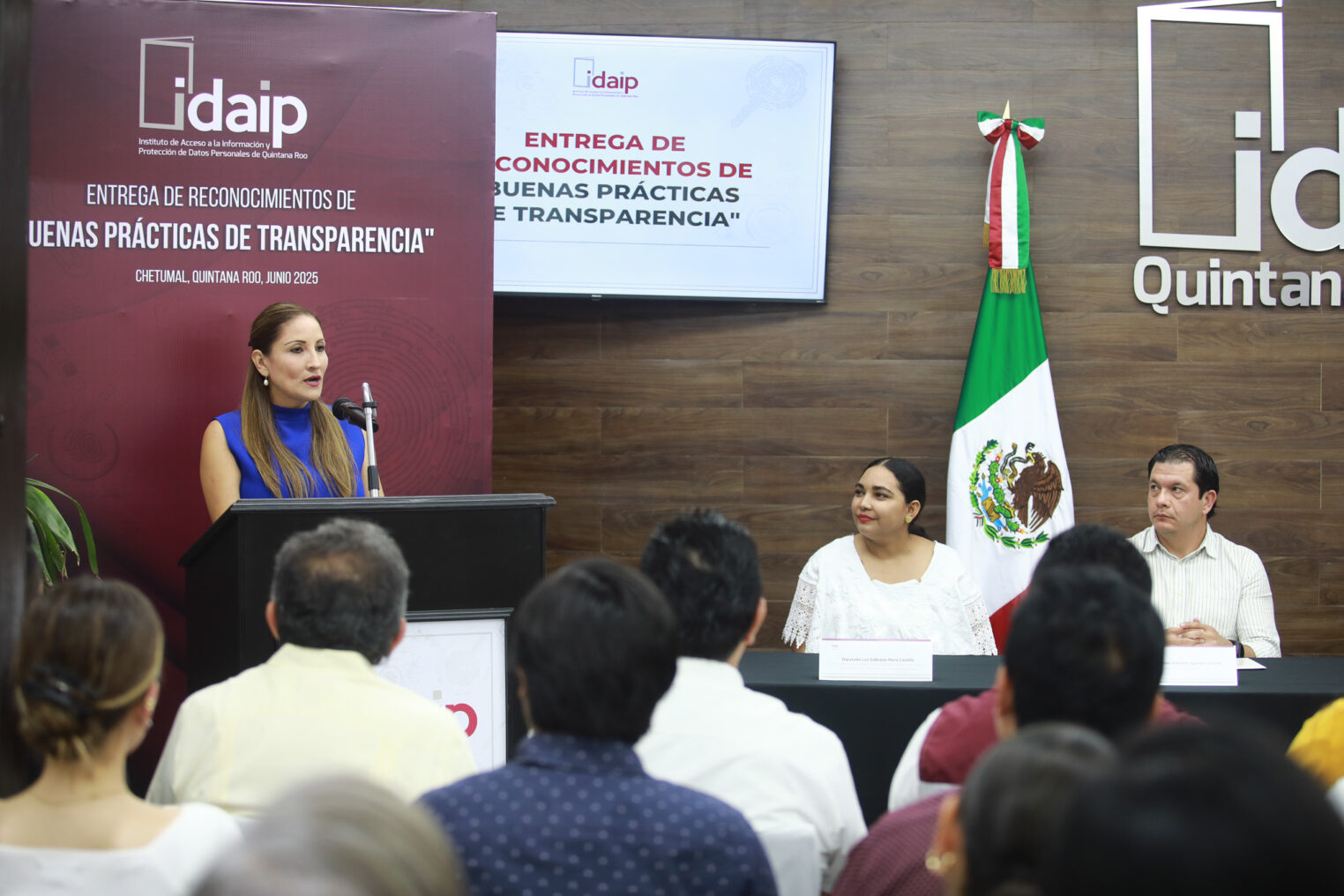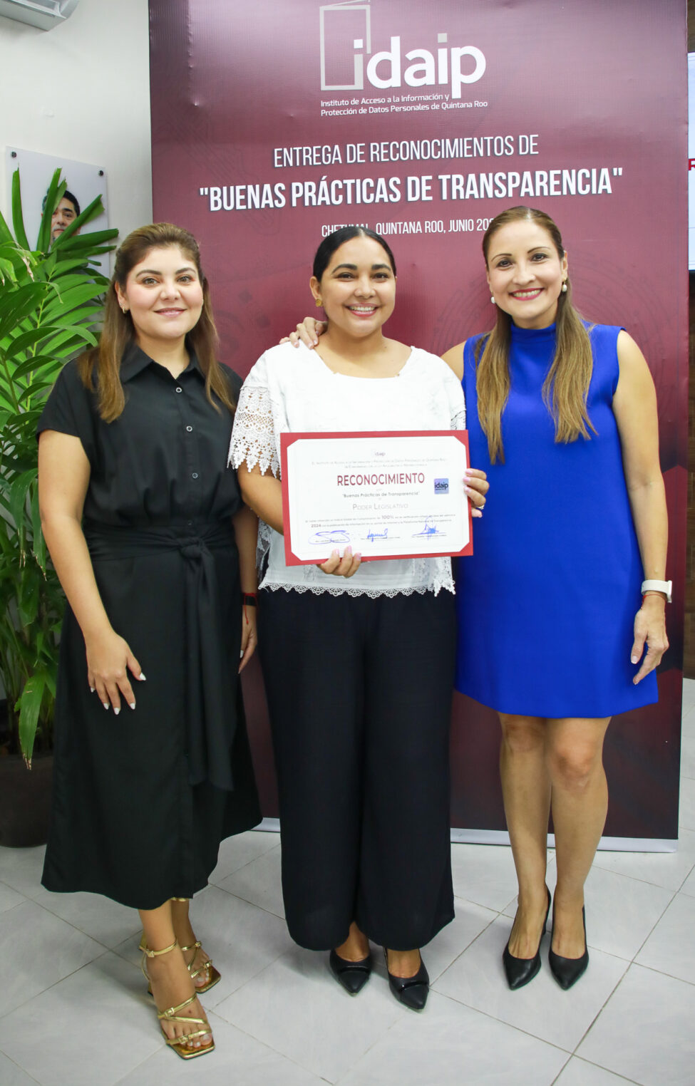 La Diputada Gabriela Mora Castillo, presidenta de la Comisión Anticorrupción, Participación Ciudadana y Órganos Autónomos, recibió en representación de la XVIII Legislatura el reconocimiento otorgado por el Instituto de Acceso a la Información y Protección de Datos Personales de Quintana Roo (Idaipqroo) por las buenas prácticas de transparencia del Poder Legislativo, al cumplir con el 100% en el Índice Global de Cumplimiento de las Obligaciones de Transparencia, en la verificación virtual oficiosa que realiza de manera anual.