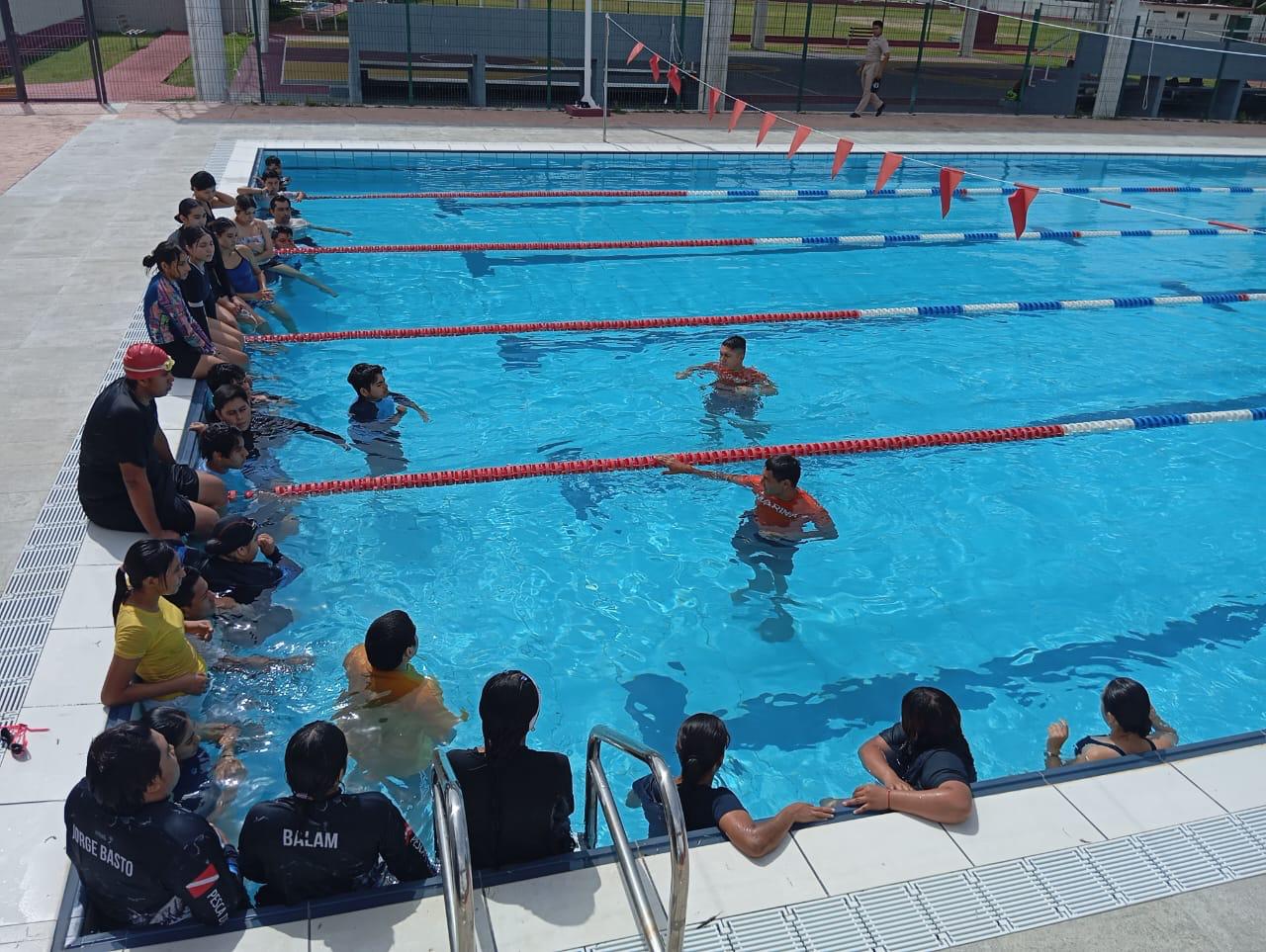 José Díaz, encargado de la coordinación de este curso de verano, detalló que son 20 monitores, 15 instructores y 30 jóvenes de servicio social, quienes se encargan de la atención y actividades en el curso, por lo que, previo a su inicio, fueron instruidos en dos sesiones de capacitación, donde se abordaron enseñanzas como la realización de los primeros auxilios hasta la reacción para la atención durante las actividades acuáticas.