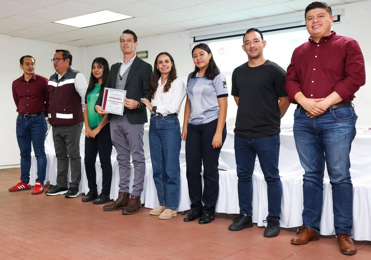 Como parte del evento, la presidenta municipal entregó el reconocimiento al ponente Eduardo André Valenzo Almeida, que previamente impartió su plática “Liderazgo como identidad a través del biocivismo” a los estudiantes de primer y tercer semestre de la especialidad de Expresión Gráfica.