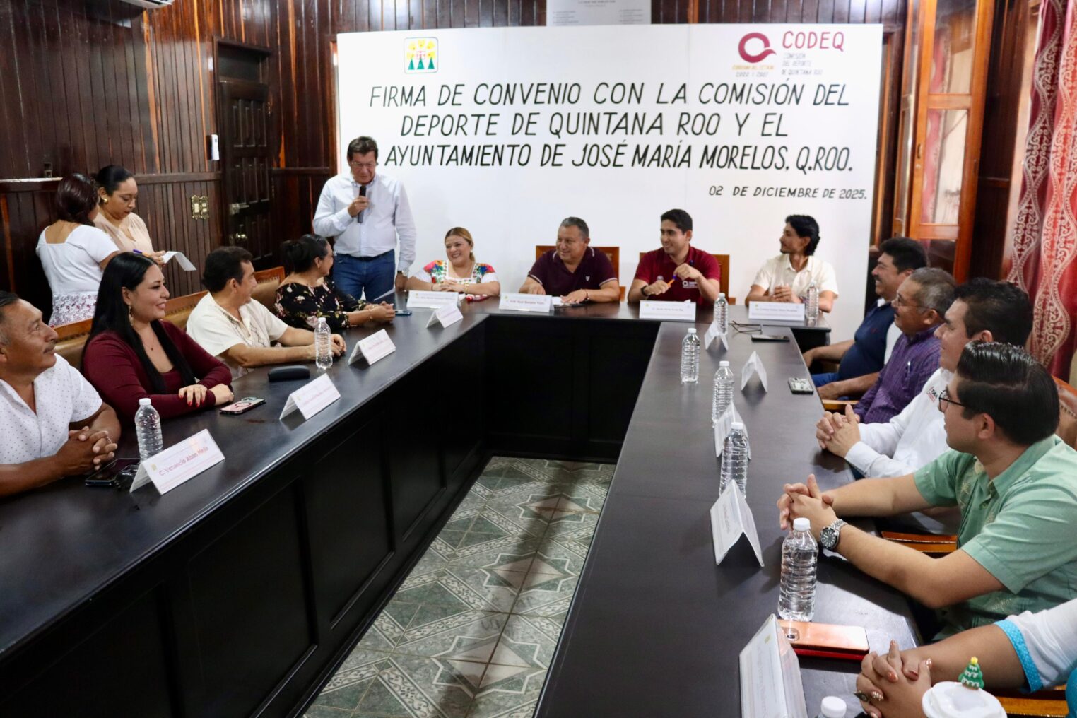 “Sabemos que en José María Morelos hay mucho talento deportivo, por eso hoy estamos formalizando el trabajo en equipo, ya que era algo que veníamos haciendo desde hace tiempo y con la firma de este convenio sólo estamos fortaleciendo esta alianza y dando certeza para que las y los deportistas de la Zona Maya puedan tener una mejor proyección y hacer de este municipio una potencia deportiva”, comentó el titular de la Codeq.