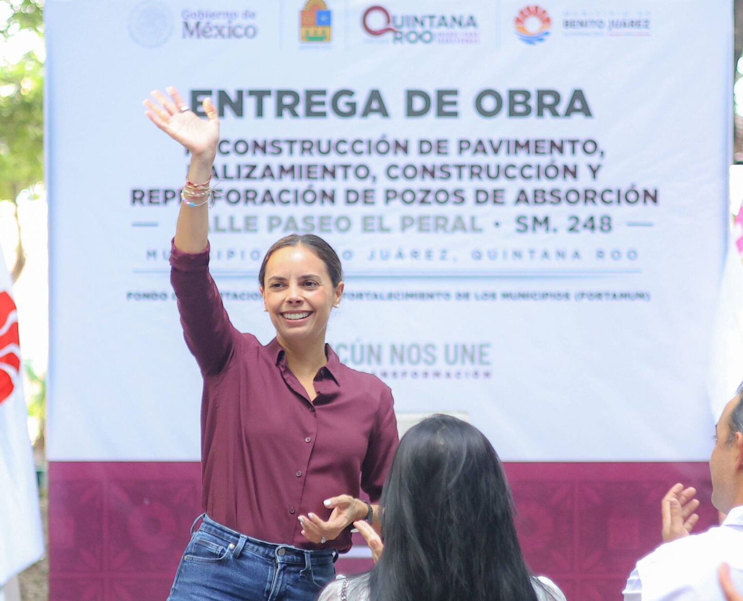 “Ustedes alzaron la voz, ustedes dijeron: ‘Paseo El Peral es nuestra prioridad’ y aquí está el resultado: Una obra que decidió el pueblo, nosotros les escuchamos y cumplimos”, externó, la presidenta municipal Ana Paty Peralta al entregar a las y los vecinos la obra concluida de reconstrucción de pavimentación, balizamiento, así como pozos de absorción en esa vialidad ubicada en la Supermanzana 248.