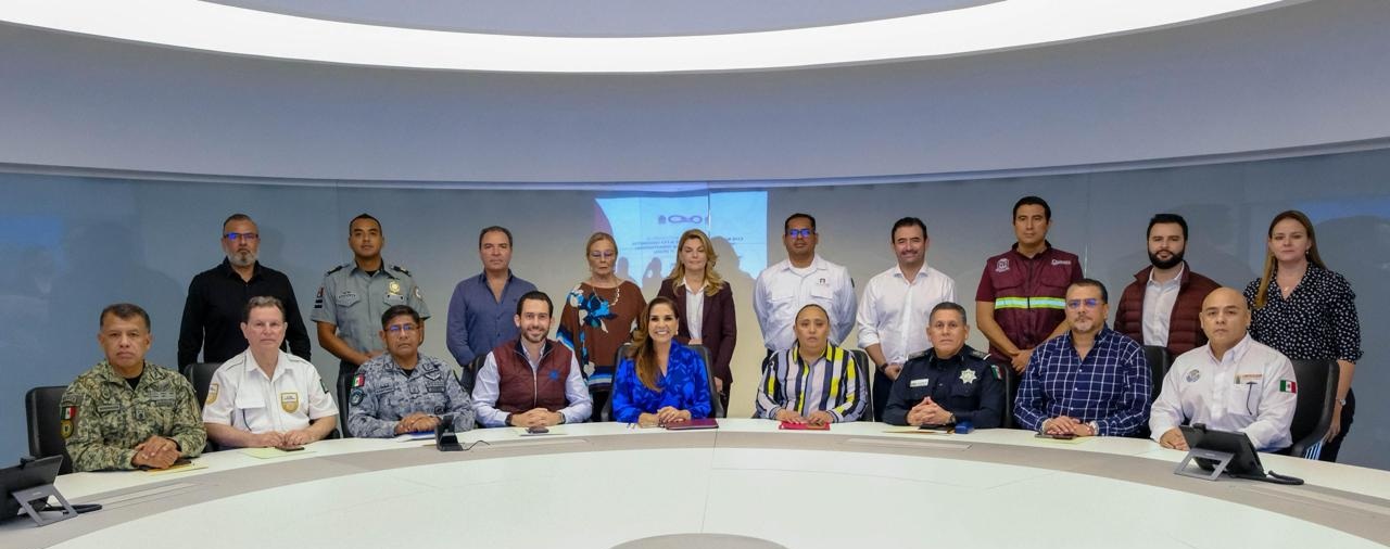La gobernadora subrayó la coordinación interinstitucional con la Guardia Nacional, el Ejército, Migración, Aduanas, la Fiscalía General de la República, la Secretaría de Turismo, la Secretaría de Seguridad Ciudadana, así como con organismos como CPTQ, ASUR y asociaciones civiles y empresariales, para garantizar una atención integral durante la temporada vacacional y eventos internacionales.