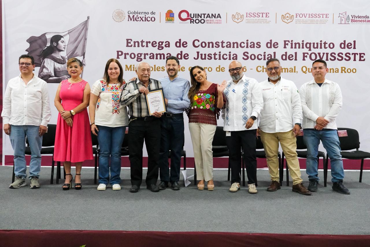 Un total de 300 derechohabientes del ISSSTE que tenían deudas impagables con el FOVISSSTE recibieron su constancia de finiquito y regresaron a su casa sin deber un solo peso a ese Fondo, luego de un evento que encabezaron la gobernadora Mara Lezama Espinosa y el director general del Instituto, Martí Batres.