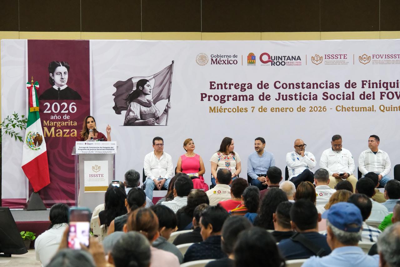 En un acto que representa alivio financiero, certeza patrimonial y justicia social para cientos de familias, se llevó a cabo la Asamblea de Entrega de Constancias de Finiquito del Programa de Justicia Social del FOVISSSTE, en el Centro de Convenciones de Chetumal.