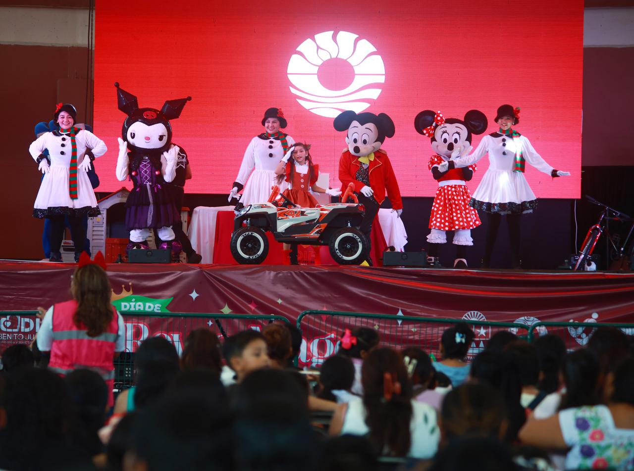 Dentro del evento, las autoridades presentes cortaron de forma simbólica la tradicional rosca de reyes con las niñas y niños invitados al escenario principal, mientras los demás infantes desde su lugar comían también su rebanada de ese delicioso pan característico de esta fecha, el cual vino en su box lunch de regalo a la entrada.