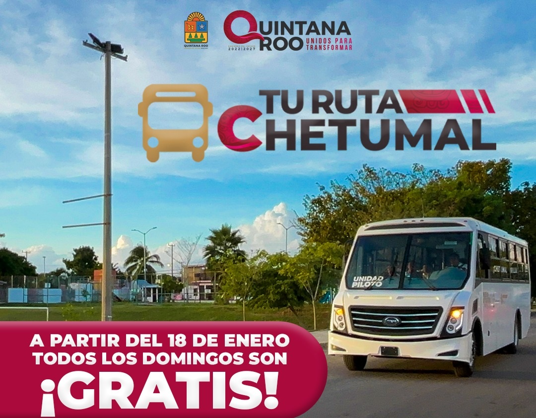El titular del Instituto de Movilidad del Estado de Quintana Roo, Rafael Hernández Kotasek, informó que la gratuidad dominical aplicará en las tres rutas actualmente en operación: Ruta Caribe, Ruta Sian Ka’an-Las Américas y Ruta Calzada Veracruz, permitiendo a la ciudadanía realizar viajes seguros, cómodos y sin costo para convivir en familia, realizar actividades recreativas y disfrutar la ciudad.