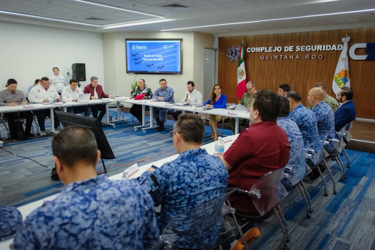 La gobernadora Mara Lezama Espinosa encabezó una reunión de trabajo con representantes de la Fuerza Aérea Mexicana y directivos del Comité de la Feria Aeroespacial México (Famex) para evaluar los avances del “Tulum Air Show 2026”.