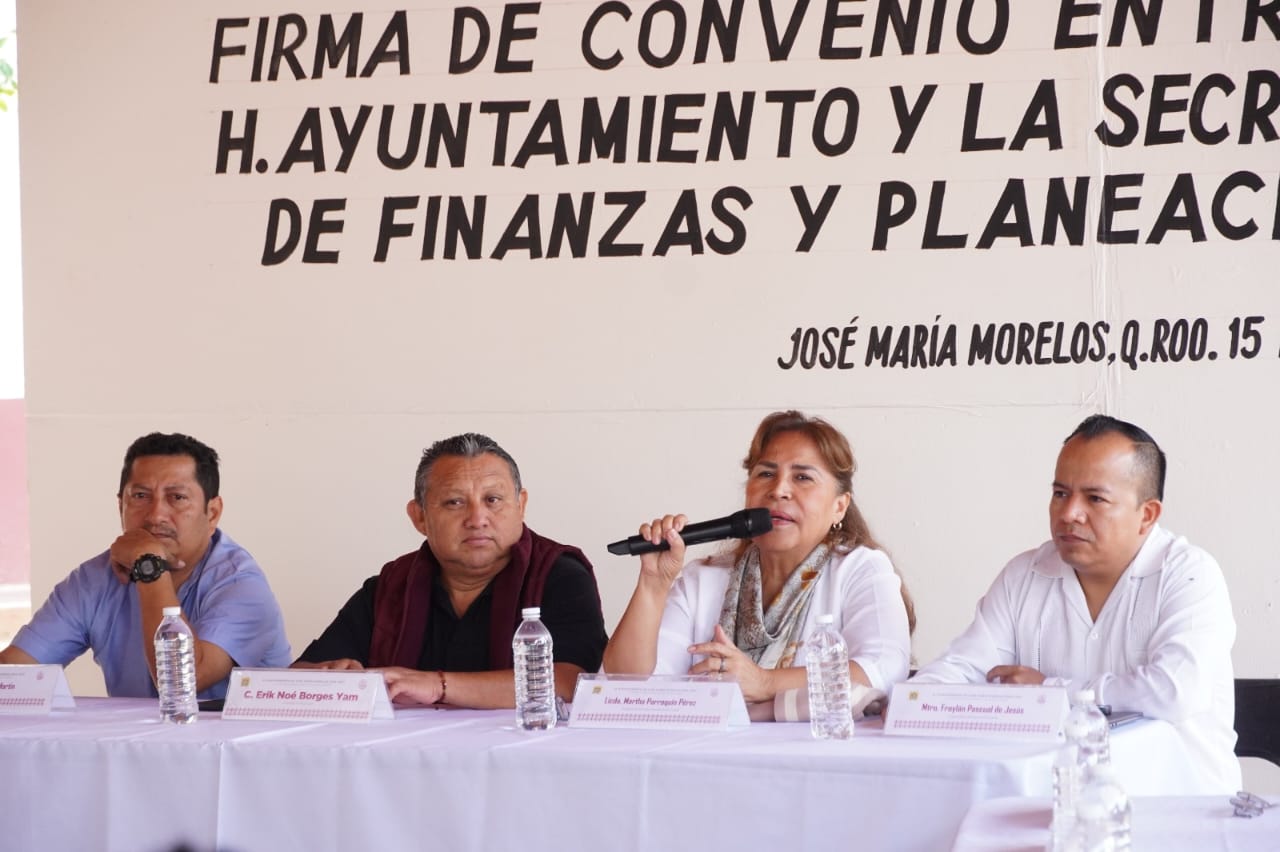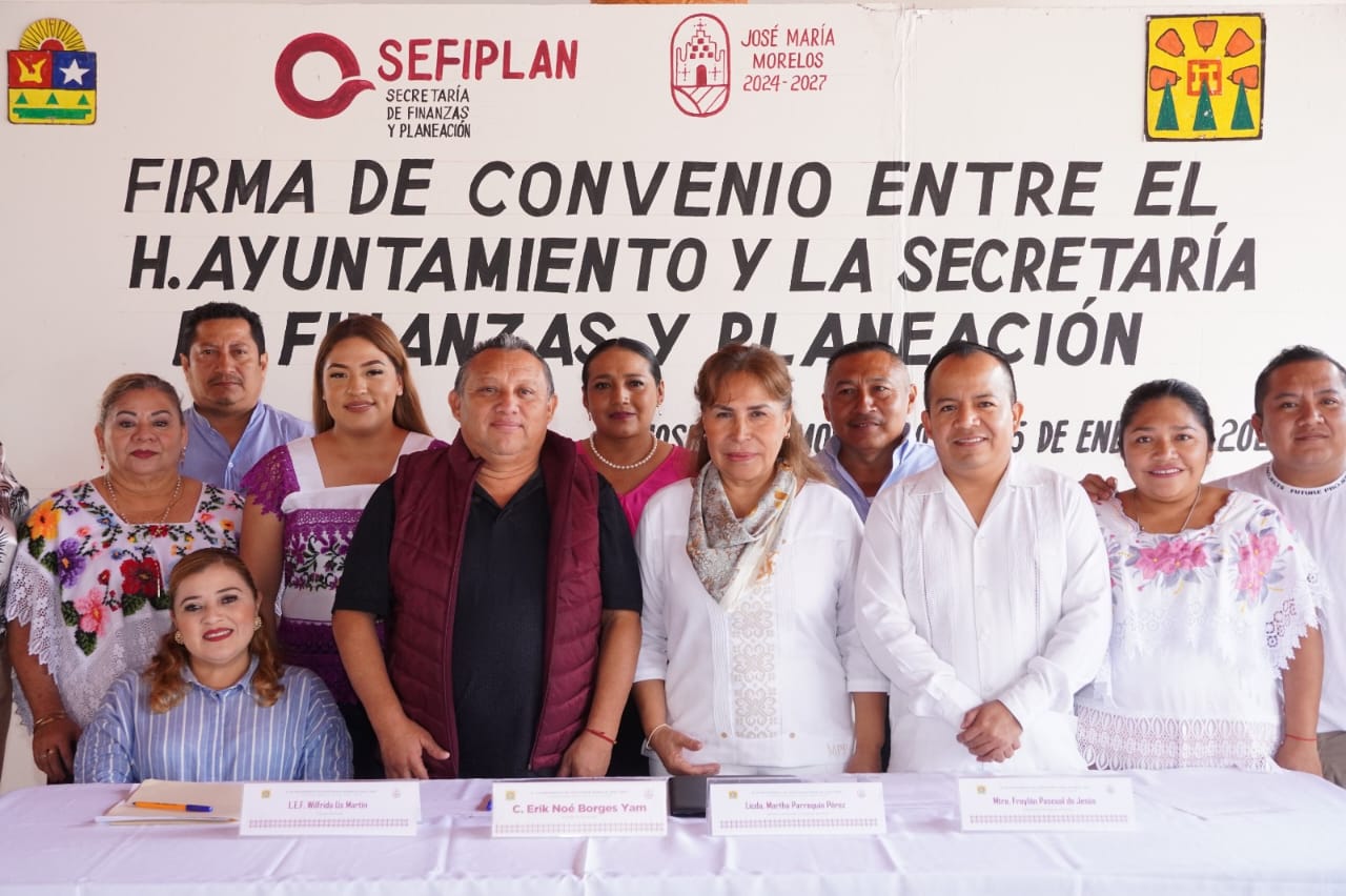 El acuerdo fue suscrito por Martha Parroquín Pérez, secretaria de Finanzas y Planeación; Erik Noé Borges Yam, presidente municipal de José María Morelos; y Héctor José Contreras Mercader, director general del Servicio de Administración Tributaria de Quintana Roo, acompañado por Wilfrido Us Martín, tesorero municipal.