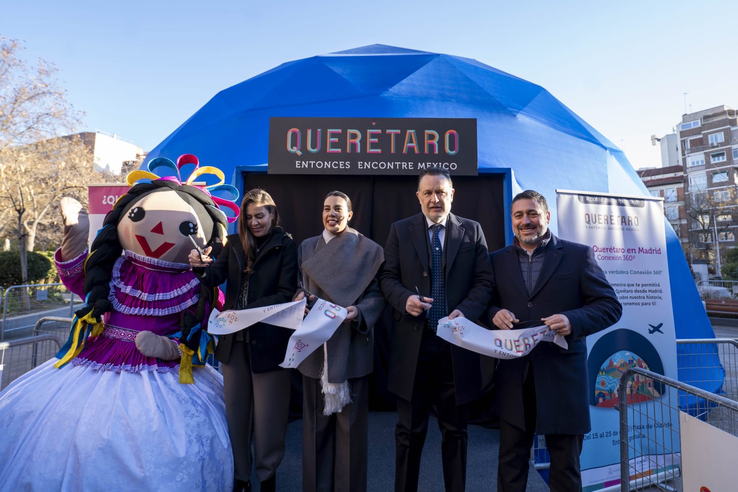 En el marco de las actividades previas a la Feria Internacional de Turismo (FITUR), el gobernador, Mauricio Kuri González, encabezó la inauguración del Domo Inmersivo “Conexión”, instalado en la Plaza de Olavide, en Madrid, un proyecto de promoción turística y cultural que, mediante una experiencia multisensorial, refuerza la relación histórica y contemporánea entre Querétaro y España.