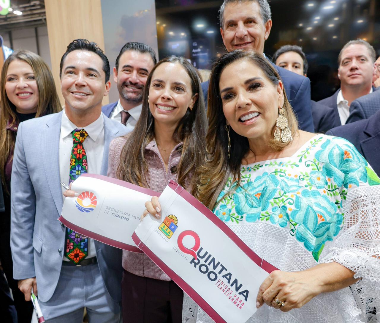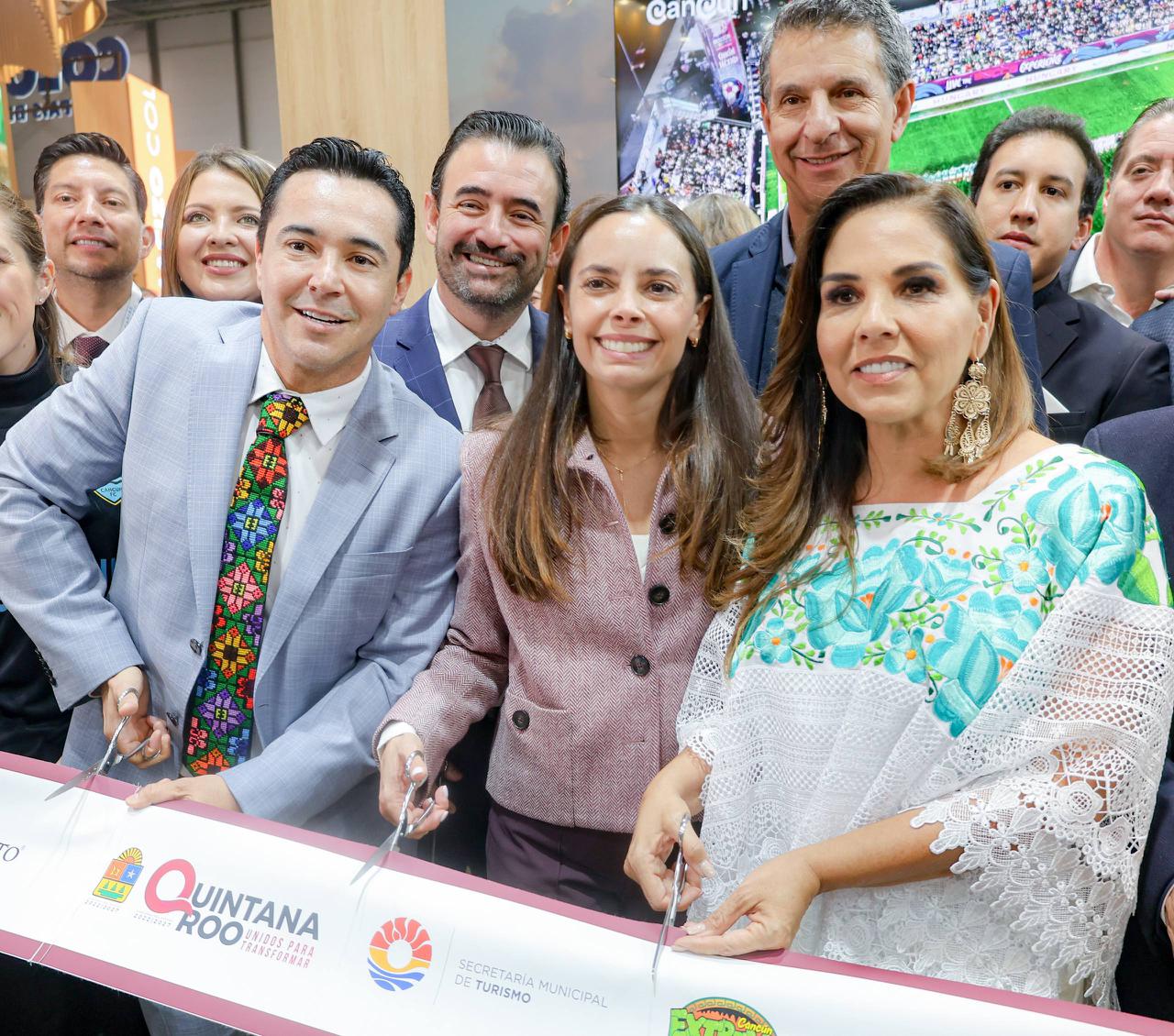Como parte de la jornada inaugural, la presidenta municipal acompañó a la secretaria de Turismo del Gobierno de México, Josefina Rodríguez Zamora; a la gobernadora de Quintana Roo, Mara Lezama; y al embajador de México en España, Quirino Ordaz Coppel, durante el corte del listón del Pabellón del Caribe Mexicano, como sinónimo de coordinación institucional y fortalecimiento de la promoción turística del país en el exterior.