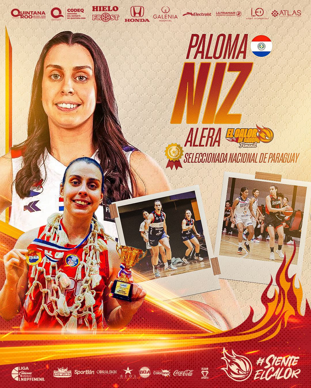 Con el objetivo de seguir con el armado del plantel para la próxima Temporada 2026 de la Liga Caliente.Mx LNBP Femenil, la directiva de El Calor de Cancún anunció su segundo refuerzo, se trata de la paraguaya Paloma Niz, quien llegará a sumar su talento y experiencia con el plantel que comanda el coach Giovanni Rivera.