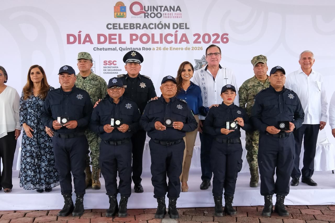 Por su parte, el Policía del Año, José Ángel Dorantes Marroquí, expresó el compromiso de todos sus compañeros de trabajar con entusiasmo y profesionalismo para lograr que la Secretaría de Seguridad Ciudadana de Quintana Roo sea la mejor del país, con el apoyo de la gobernadora Mara Lezama y con una misión importante: Garantizar la seguridad y la paz de los quintanarroenses y de visitantes.