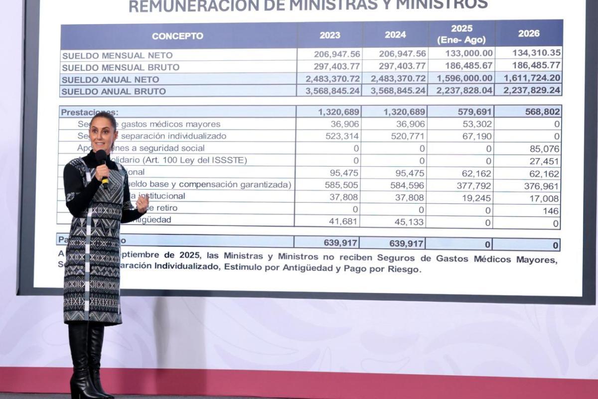La presidenta Claudia Sheinbaum Pardo dio a conocer una lista de 59 de beneficios, servicios no oficiales y prestaciones que recibían los ministros de la Suprema Corte de Justicia de la Nación (SCJN), y que fueron cancelados por la administración actual de ese órgano colegiado.