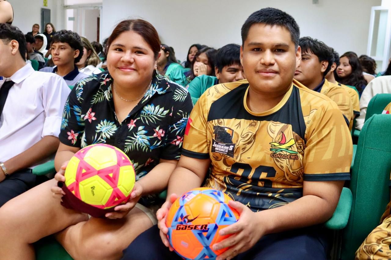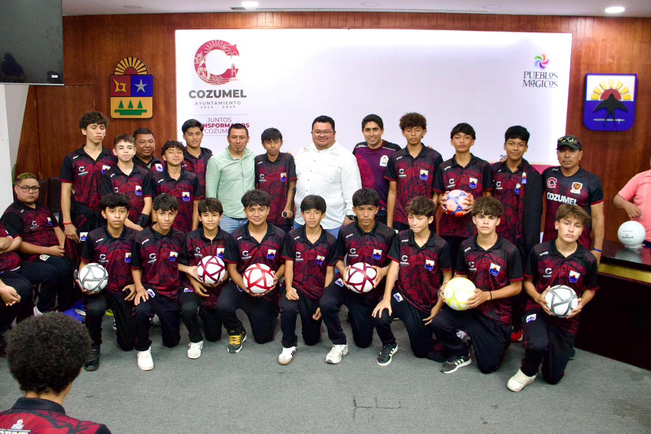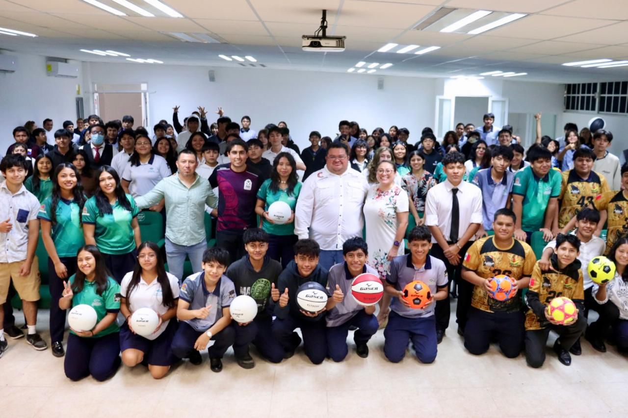 Para fortalecer el deporte en Quintana Roo y consolidar el trabajo coordinado con los municipios, durante la gira de trabajo en Cozumel, el presidente de la Comisión del Deporte de Quintana Roo (Codeq), Jacobo Arzate Hop, junto al presidente municipal José Luis Chacón y la directora del Colegio Conalep Cozumel, Diana Sosa Blanco, realizaron la entrega de material deportivo a las y los alumnos-deportistas que integran el equipo Jaguares Negros del Conalep Cozumel.