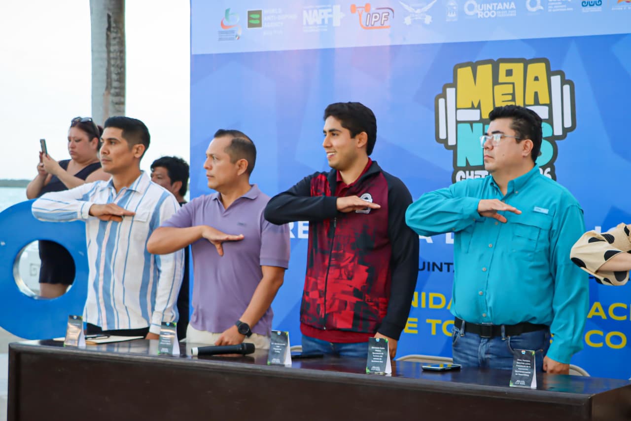 En la inauguración también estuvieron presentes Luis Onofre, presidente de la Federación Mexicana de Powerlifting; Mariana López, presidenta de la Asociación Quintanarroense de Powerlifting; además de José Canul Tun, director del Instituto Municipal de Cultura Física y Deporte de Othón P. Blanco; y Omar Govea, subsecretario de Planeación, Desarrollo Turístico y Mejora Regulatoria de la Sedetur.