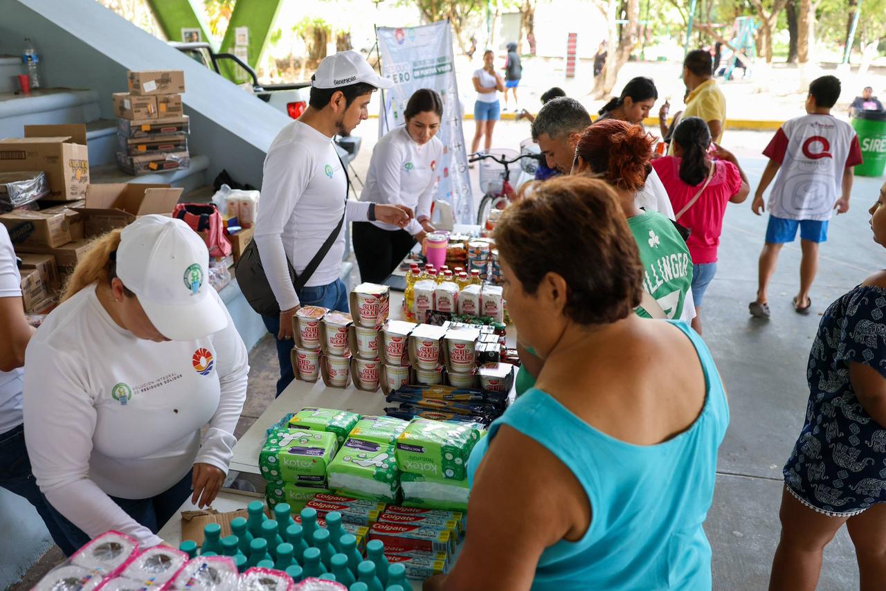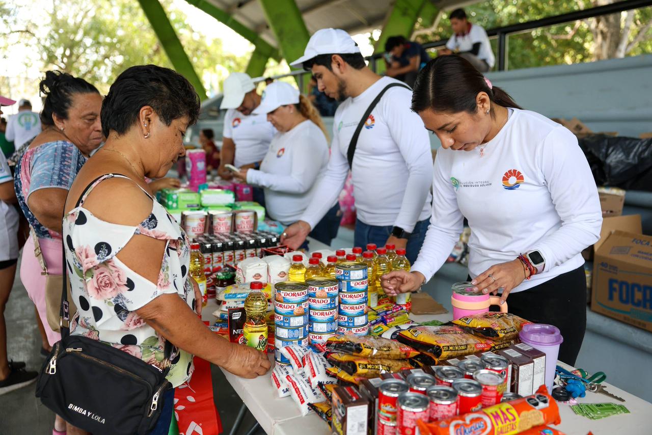 En el marco de la Onceava Edición del programa “Residuo Cero”, implementado por el Ayuntamiento de Benito Juárez a través de Solución Integral de Residuos Sólidos (Siresol), se realizó la Jornada del Centro de Residuos Recuperables en el Domo Deportivo de la Supermanzana 517, donde las personas acudieron al intercambio de materiales valorizables por productos de la canasta básica.