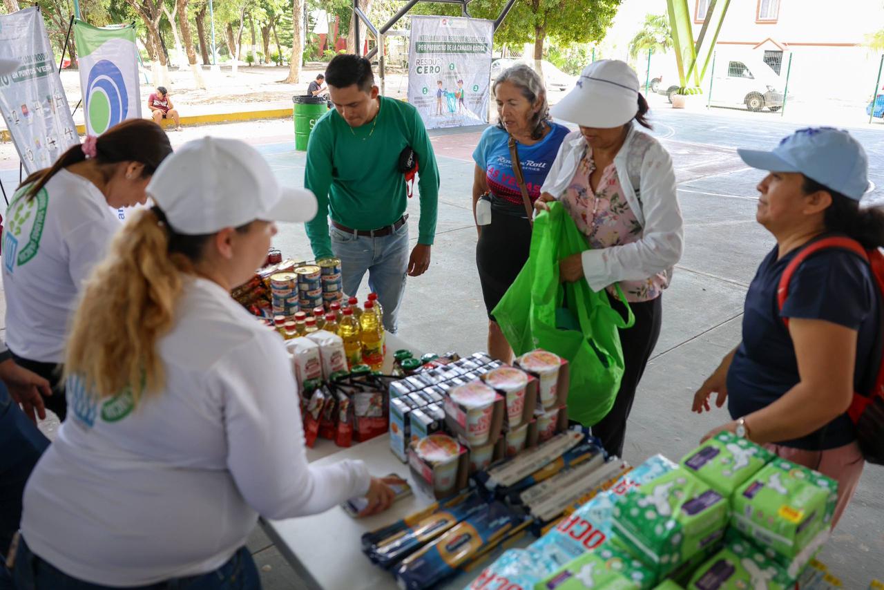 En el marco de la Onceava Edición del programa “Residuo Cero”, implementado por el Ayuntamiento de Benito Juárez a través de Solución Integral de Residuos Sólidos (Siresol), se realizó la Jornada del Centro de Residuos Recuperables en el Domo Deportivo de la Supermanzana 517, donde las personas acudieron al intercambio de materiales valorizables por productos de la canasta básica.