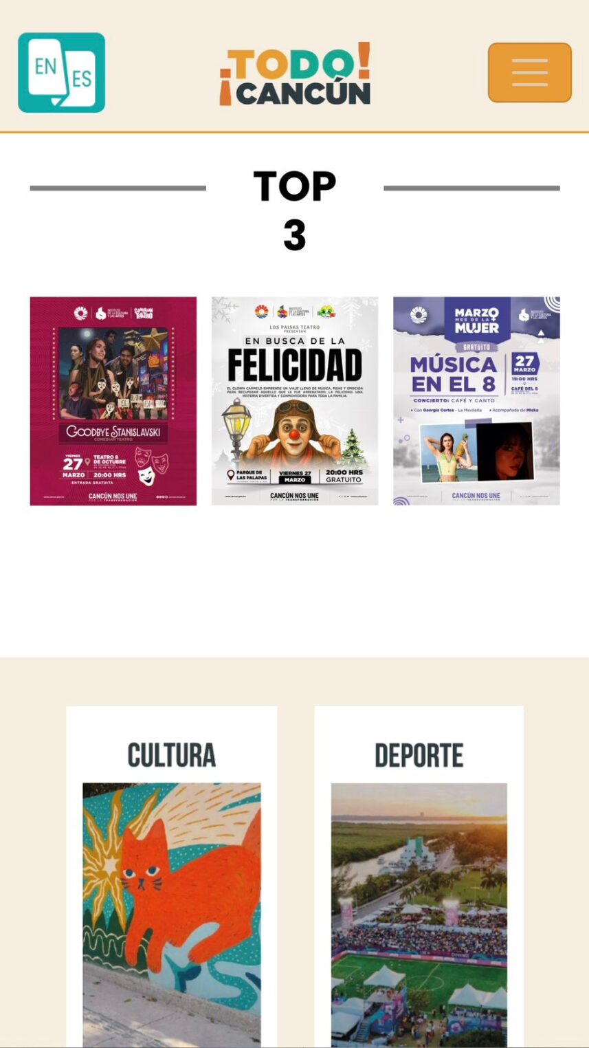 En Deporte, también se muestran los principales encuentros deportivos que se llevará a cabo en próximas fechas en la ciudad y sus recintos de este tipo: Estadio “Andrés Quintana Roo”, Estadio “Cancún 86”, Poliforum y Estadio “Beto Ávila”.