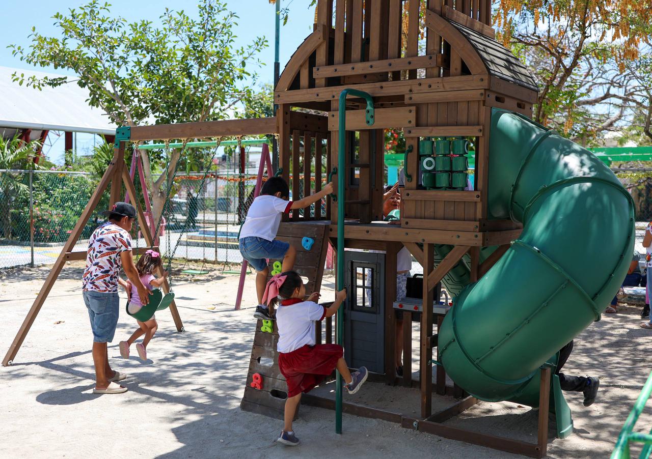 La presidenta municipal Ana Paty Peralta inauguró el área de juegos infantiles en el Parque San Antonio de la Supermanzana 93, con el fin de que las niñas y los niños tengan una vida saludable, tanto física como psicológica, así como brindar mejores oportunidades y bienestar a través del deporte, el arte y la cultura, reafirmando su compromiso con el bienestar de la niñez cancunense.