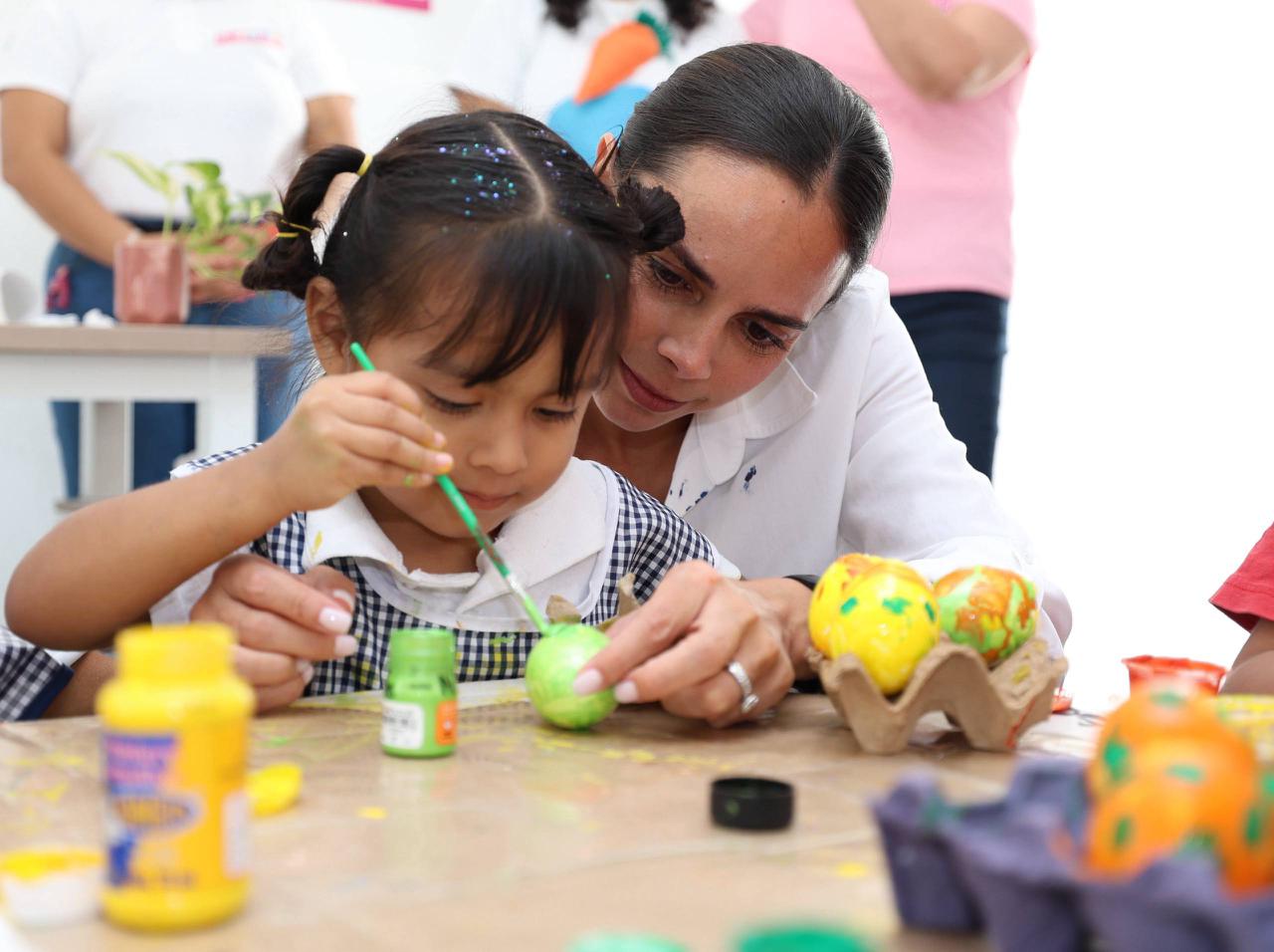 En la convivencia con los infantes, Ana Paty Peralta se sumó a la clase de pintura y decoración de huevos de pascua que recibían de parte del personal a cargo de su cuidado, como parte del itinerario de varias actividades diseñadas para fortalecer su comunicación y el desarrollo integral de sus habilidades.