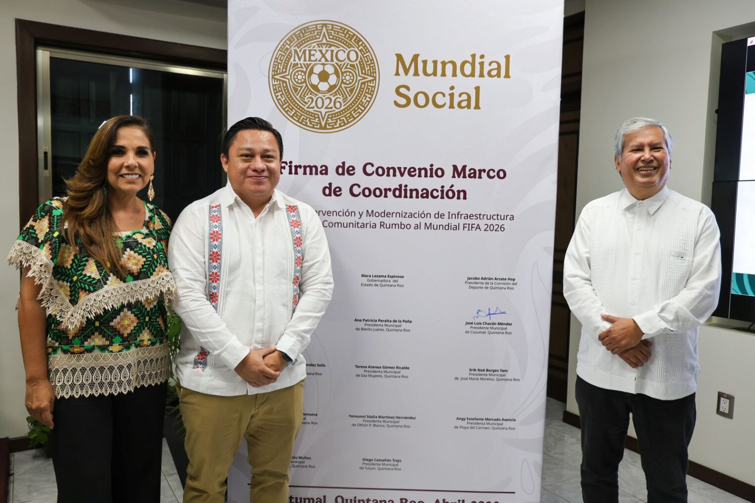 El Gobierno de Quintana Roo, encabezado por la gobernadora Mara Lezama Espinosa, firmó el Convenio Marco de Coordinación del Proyecto Mundial Social 2026, con el objetivo de impulsar el deporte como una herramienta de bienestar social, inclusión y reconstrucción del tejido comunitario, como parte de una agenda en torno a la fiesta mundialista de futbol.