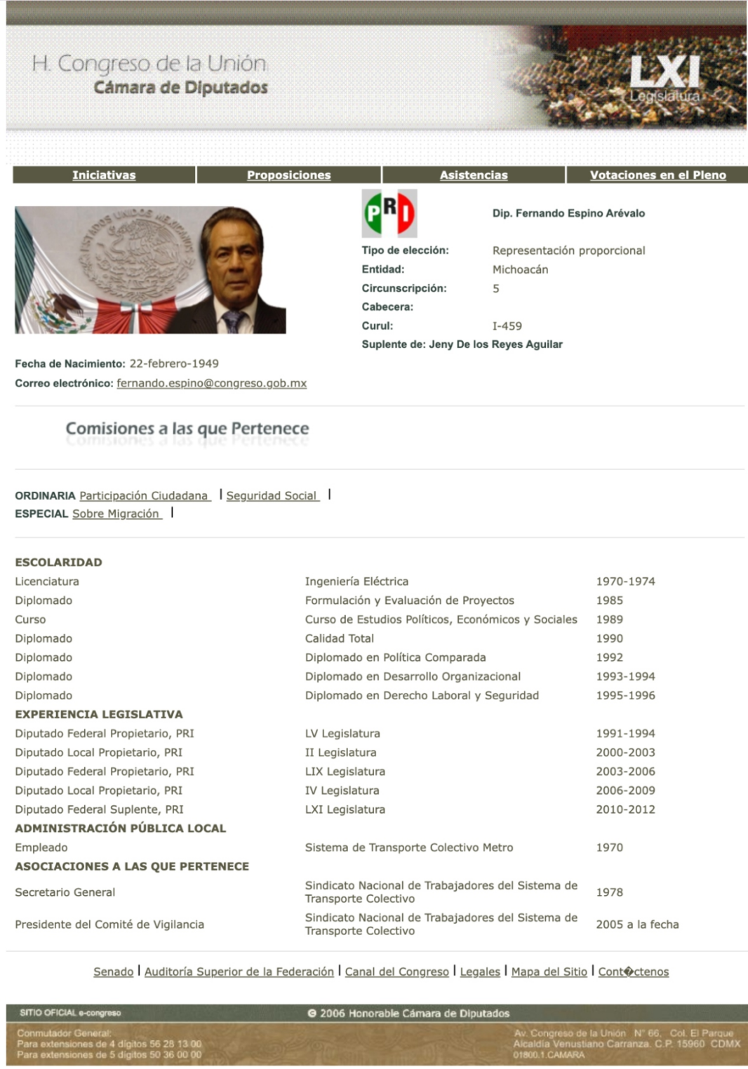 Espino Arévalo no solo ha sabido alternar cargos para conservar la dirigencia sindical, también ha sido diputado federal y diputado local en seis ocasiones entre 1991 y 2015: cuatro veces bajo las siglas del Partido Revolucionario Institucional (PRI), una por el Partido Verde Ecologista de México (PVEM) y una más por el Partido Nueva Alianza, gracias a una alianza que tejió en su momento con la ex dirigente magisterial, Elba Esther Gordillo.