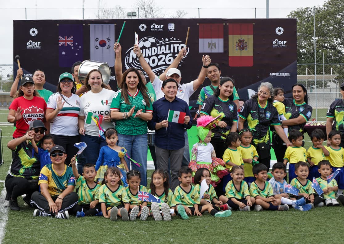 En un ambiente lleno de entusiasmo, juego y convivencia, el Sistema DIF Benito Juárez llevó a cabo el “Mundialito 2026”, una actividad diseñada para impulsar el desarrollo integral de la niñez, fortalecer valores y promover la unión familiar, con la participación de alumnas y alumnos de los Centros Asistenciales de Desarrollo Infantil (CADI) y los Centros de Asistencia Infantil (CAI), en el campo de futbol “Cozumel”.