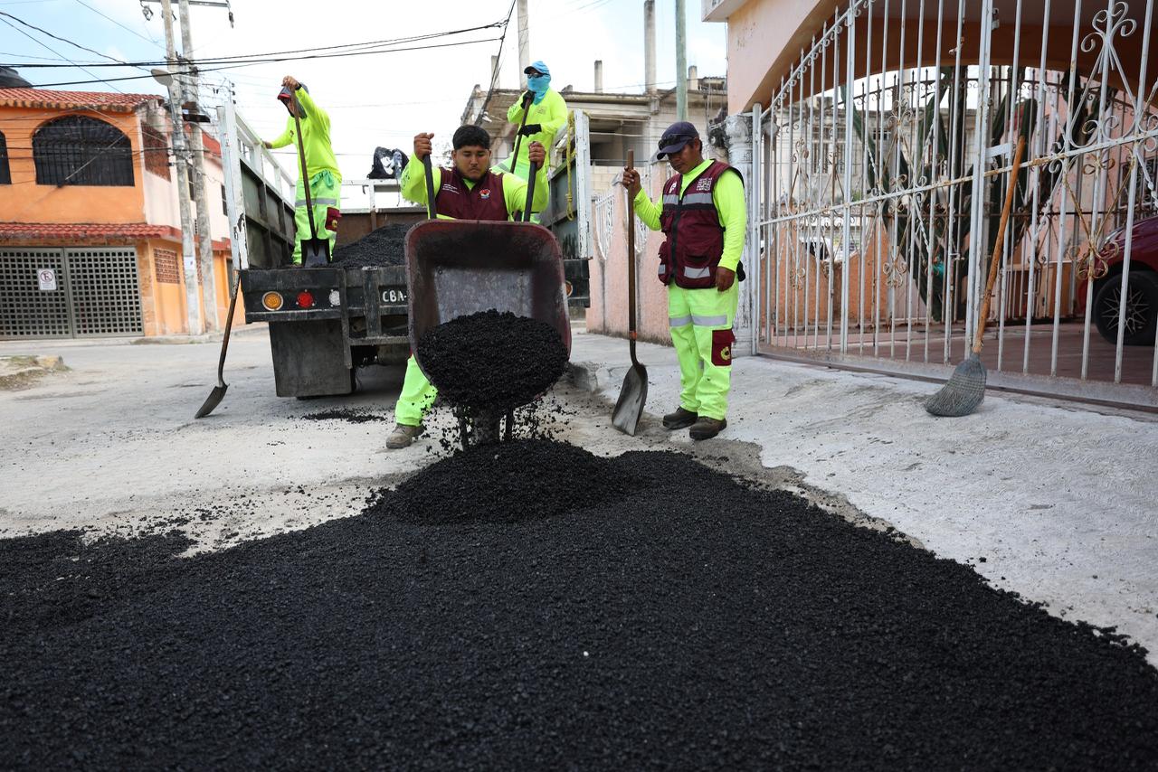Como en todos los demás casos de este tipo de mantenimiento vial, explicó que se hace el corte de la vialidad con la maquinaria para lograr cinco centímetros de profundidad, se hace la limpieza del sitio y se coloca el asfalto en frío, para finalizar con la compactación, por lo que en todas las tareas se emplearon las máquinas Bobcat, rodillo compactador y máquina vibratoria.
