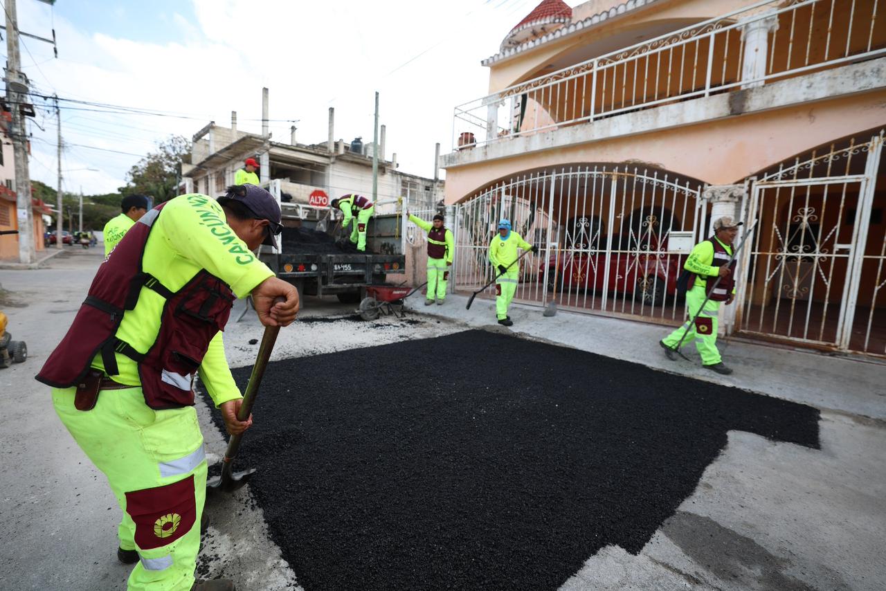 Detalló que la brigada conformada por 16 trabajadores realizó el mantenimiento vial de las calles Framboyán, Laurel y Retorno Granadilla, que rodean el Mercado 23, ya que no solamente se atiende únicamente los baches marcados en el reporte, sino toda la zona.