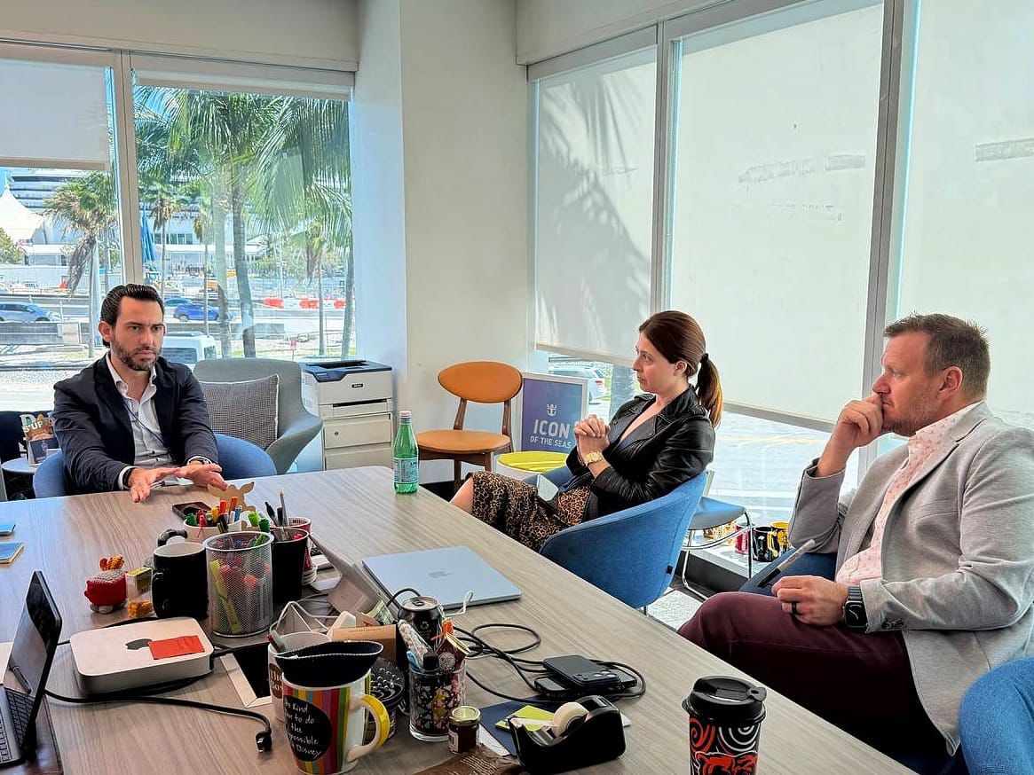 Como parte de la agenda de trabajo en Miami, Florida, la delegación quintanarroense sostuvo reuniones estratégicas con líderes de la industria, entre las que destaca el encuentro con directivos de “Royal Caribbean Group”, una de las navieras más importantes del mundo, donde se abordaron proyectos de inversión en el estado, así como el desarrollo de iniciativas en destinos clave como Mahahual y Cozumel, con el objetivo de consolidar a Quintana Roo como referente turístico internacional.