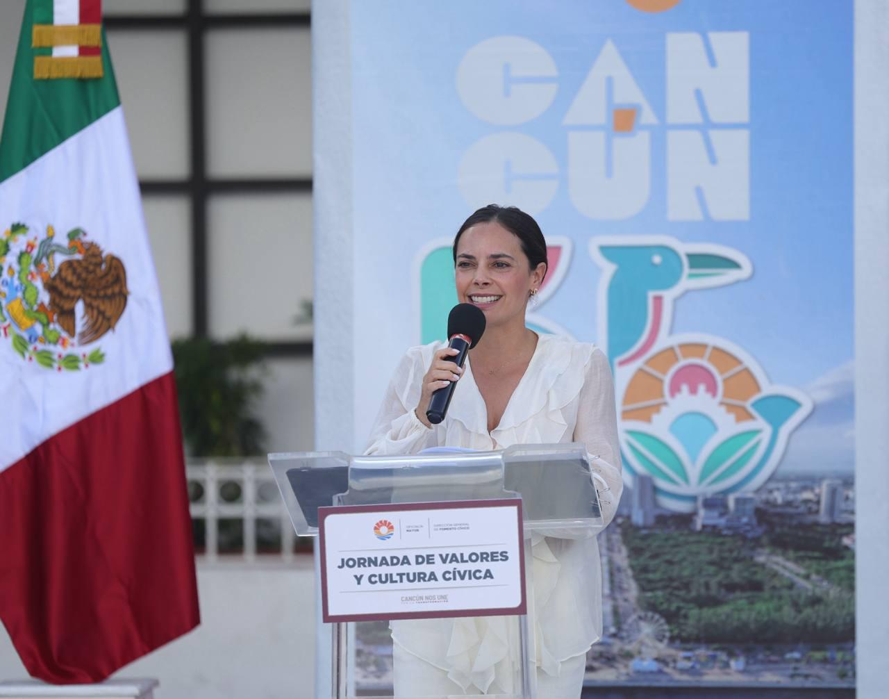 A su vez, destacó que Cancún es una ciudad fuerte, vibrante y que se ha posicionado en el mundo, pero también exige a la ciudadanía actuar con responsabilidad. “Hoy al ver esta bandera de México, les pido que renovemos ese compromiso, porque solo unidos vamos a lograr la ciudad por la que llegamos todos, la ciudad por la que queremos, la ciudad que merecemos. Sigamos construyendo con mucho orgullo y con responsabilidad el mejor Cancún posible, feliz 56 aniversario Cancún, feliz aniversario cancunenses”, enfatizó.