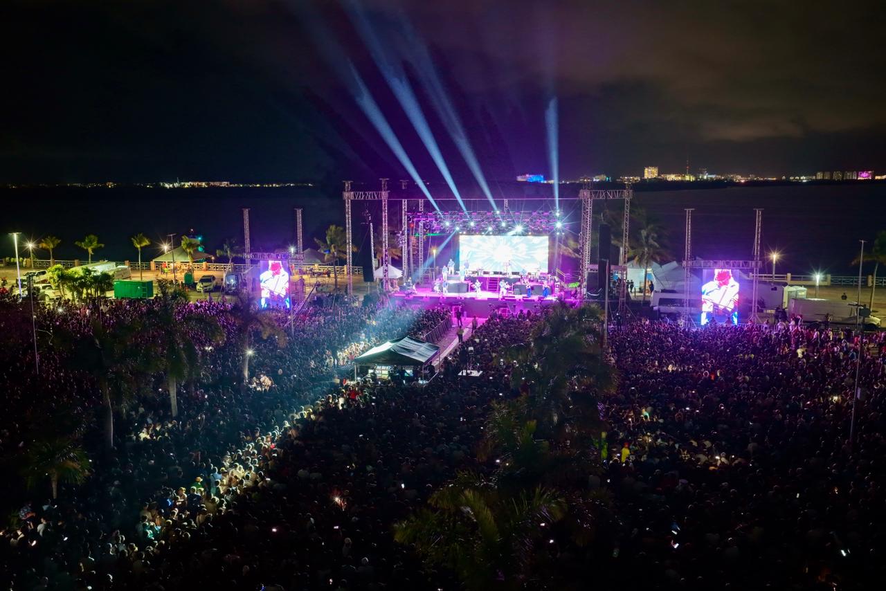 En una total fiesta comunitaria, familiar y espectacular a la orilla de la Laguna Nichupté, con la presencia de la presidenta Municipal Ana Paty Peralta, la agrupación mexicana “Los Ángeles Azules” coronó los festejos del 56 Aniversario de Cancún con un concierto gratuito en Malecón Tajamar, al que asistieron más de 31 mil personas.