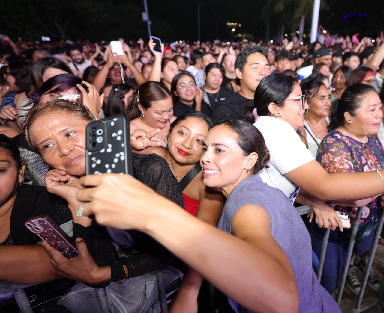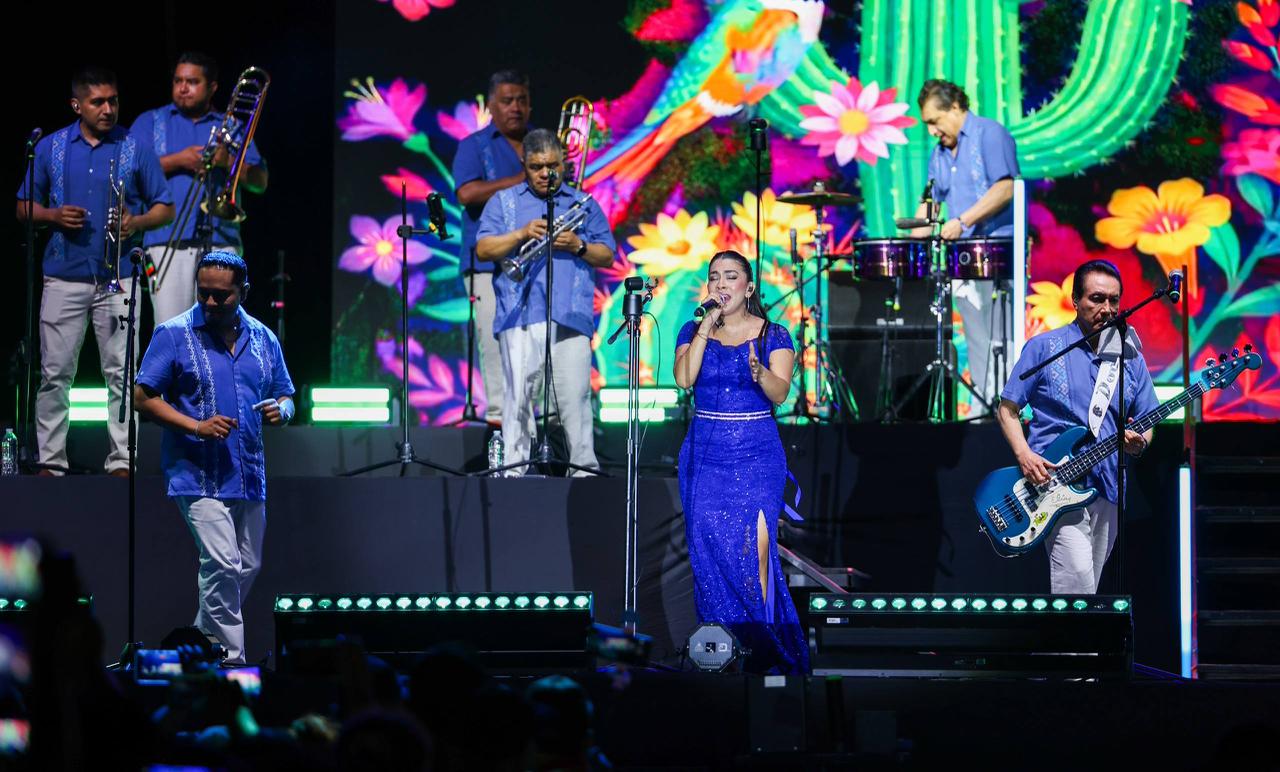“’Los Ángeles Azules’ ya llegaron a Cancún y estamos felices de tenerlos en este 56 aniversario de nuestra ciudad. Estamos listos para celebrar en grande a Cancún, esta hermosa ciudad que nos une a todas y todos”, expresó desde el escenario.