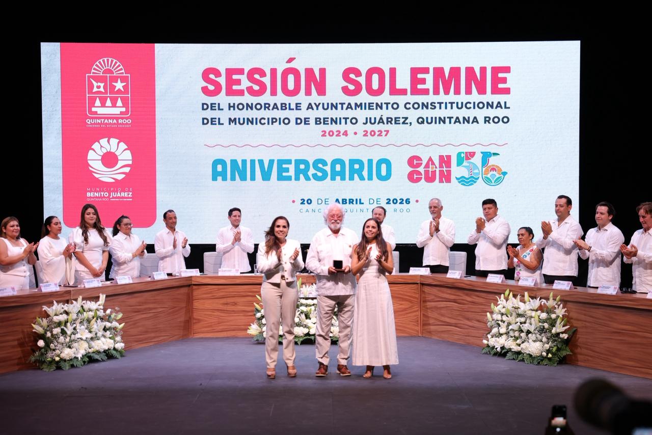 Al encabezar con la gobernadora Mara Lezama, la Cuarta Sesión Solemne del Ayuntamiento de Benito Juárez 2024-2027 en el Teatro de la Ciudad, con la presencia del secretario general del Ayuntamiento, Pablo Gutiérrez Fernández, y tras la lectura del Consejo de Premiación, entregó la Medalla al Mérito Ciudadano “Sigfrido Paz Paredes 2026” al arquitecto, empresario y filántropo Carlos Constandse Madrazo, actual presidente de la Cruz Roja Mexicana en Quintana Roo, e integrante de la Confederación Patronal de la República Mexicana (Coparmex) Quintana Roo, por su destacada contribución al desarrollo económico, turístico, así como en materia de labor social y humanística en la localidad.