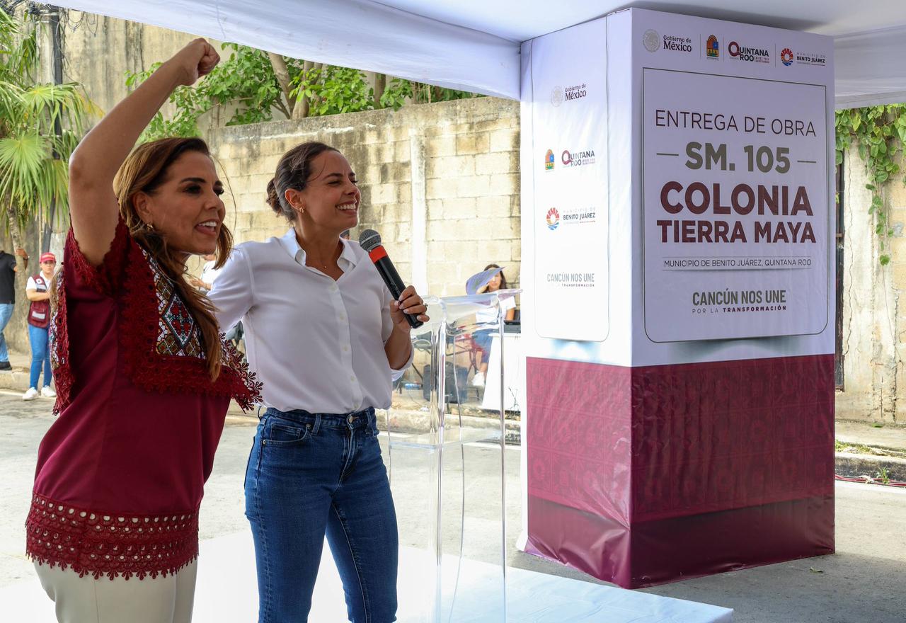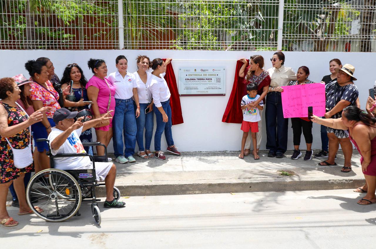 La presidenta municipal Ana Paty Peralta y la gobernadora Mara Lezama Espinosa entregaron la rehabilitación de pavimento en la Supermanzana 105, en la colonia Tierra Maya, una obra esperada por años, que hoy en su segunda intervención beneficia de manera directa a más de 27 mil habitantes.
