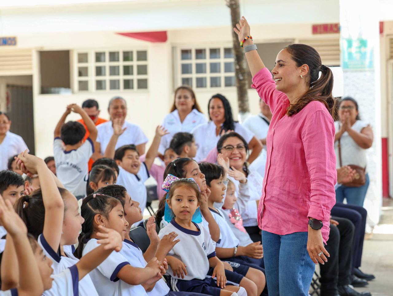 La alcaldesa aseguró que todo lo que digan puede ayudar a otra persona, por lo que les pidió que siempre participen, levanten la mano, opinen y que no tengan miedo de hablar, porque cuando una niña o un niño se atreven a compartir sus ideas, no solamente cambian su escuela, sino también transforman su ciudad.